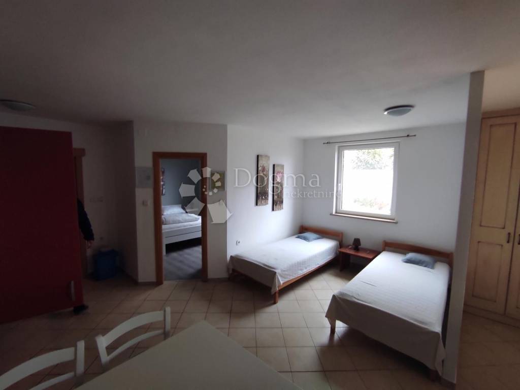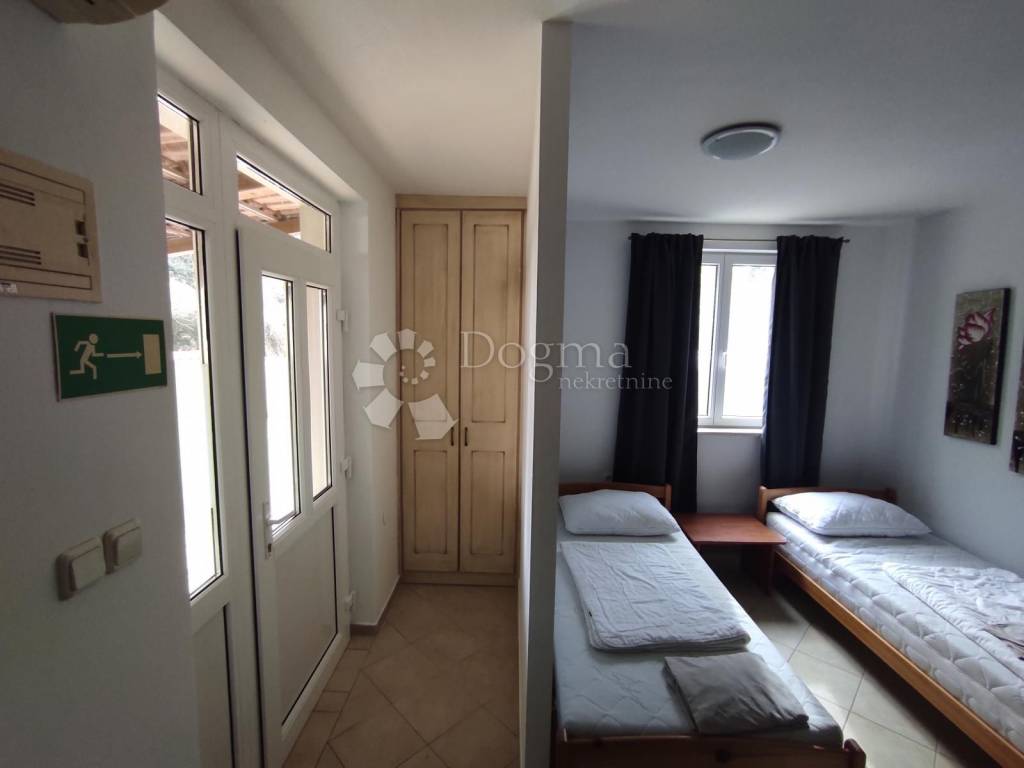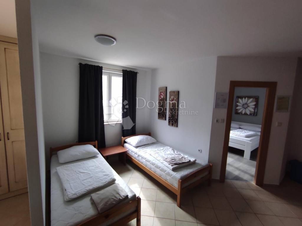 E... baš u tom predivnom mjestu prodaje se ova izvanredna kuća koja ima štošta za ponuditi. Za početak kuća je katnica površine od 395 m2. Prizemlje se sastoji od 3 apartmana površine 50m2. Svaki apartman ima lounge ispred ulaza a sastoji se od kuhinje, blagovaonice, dnevnog boravka, kupaonice s WC, te dvije spavaće sobe.