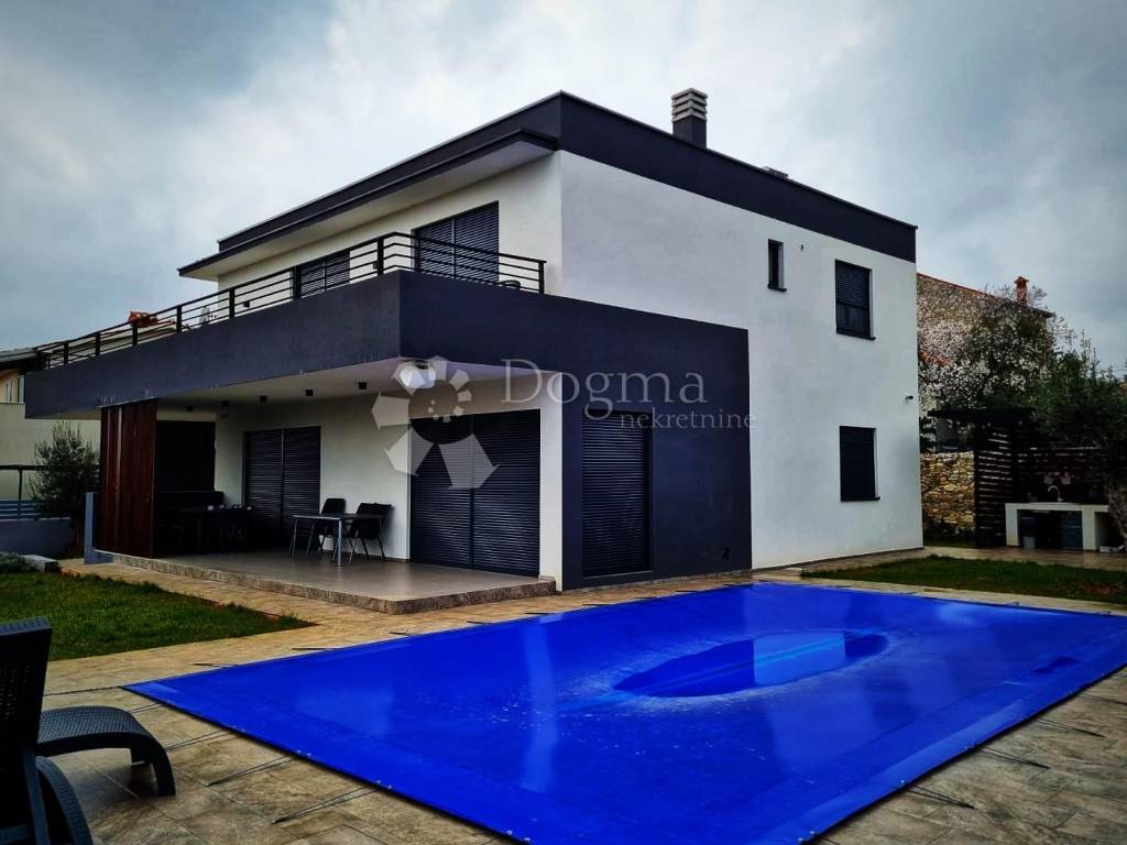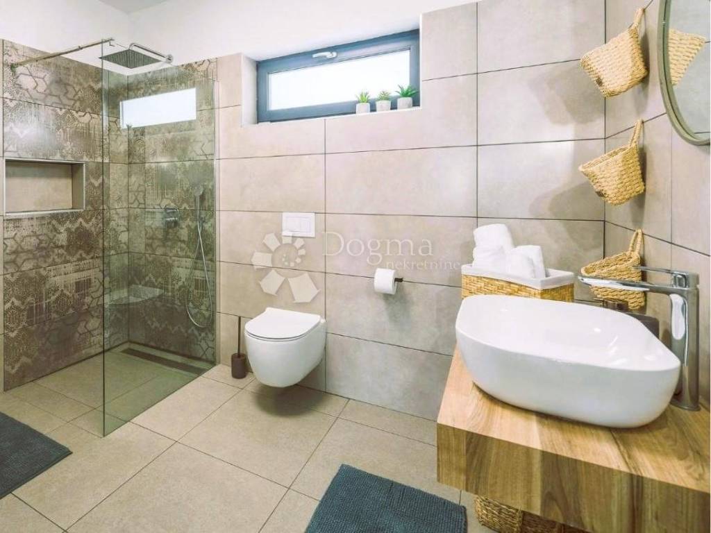 Na prekrasno uređenoj okućnici od 665 m2 nalazi se bazen sa uređenim sunčalištem, te kamin i vanjska kuhinja za savršeno uživanje u ljetnim mjesecima.