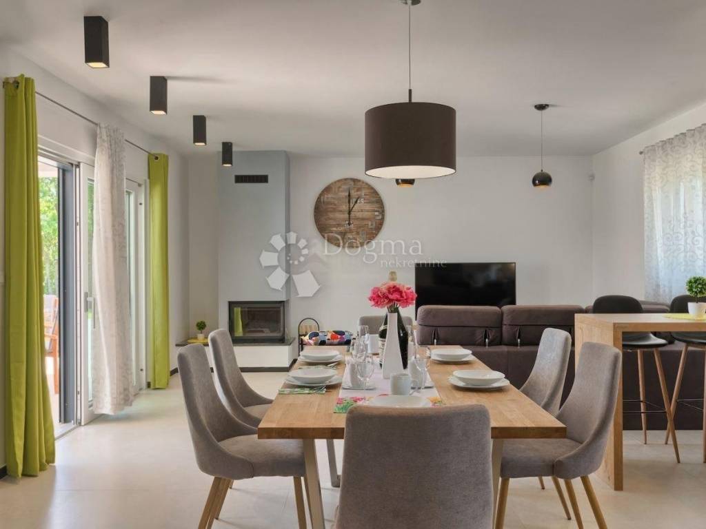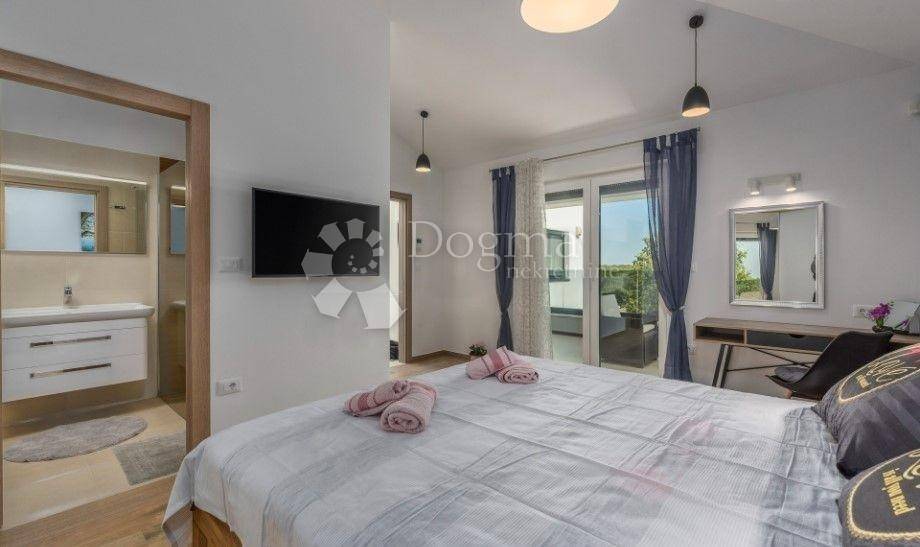 Atraktivna villa je opremljena suvremenim uređajima i dizajnerskim namještajem, u potpunosti je klimatizirana I ima podno grijanje