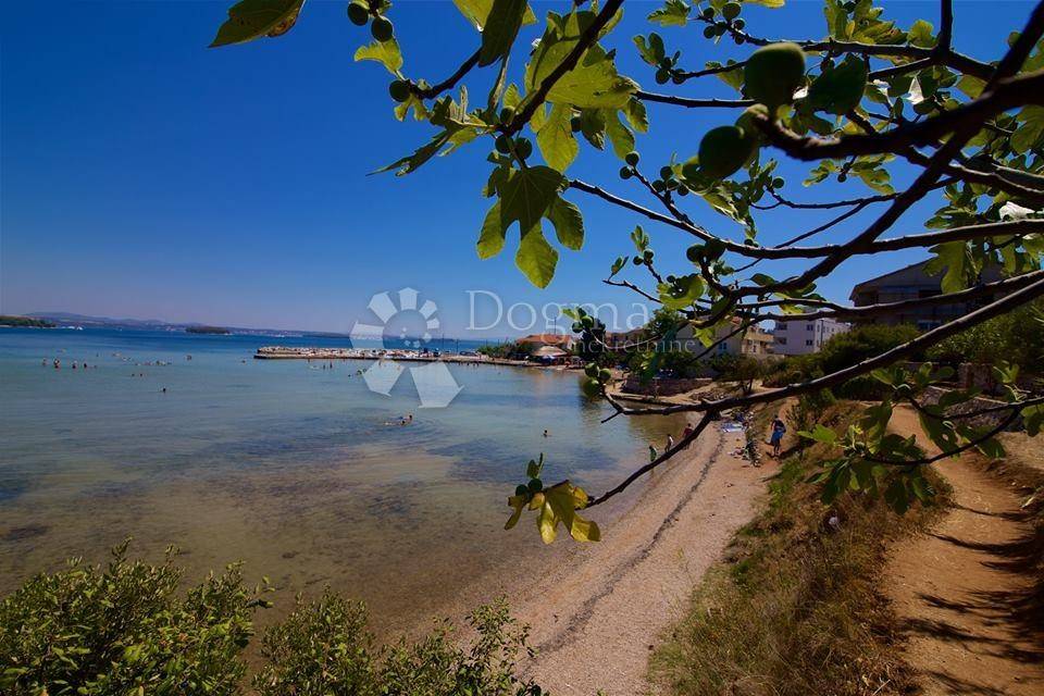 Građevinsko zemljište veličine 2037 m2 nalazi se na atraktivnoj lokaciji udaljeno 70 m od mora i uređene plaže. Teren se nalazi uz javnu površinu sa svom potrebnom infrastrukturom. Mogućnost gradnje više stambenih objekata ili vila sa bazenom.