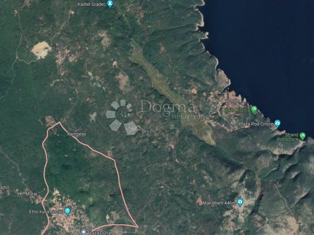 Gradnja nije moguća, teren se može koristiti isključivo samo kao vinograd, maslinik ili za uzgoj mediteranskih kultura. Od mora je udaljen oko 1800 metara.