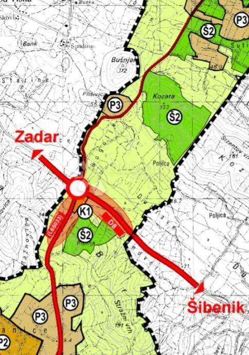 Zemljište se nalazi uz Jadransku magistralu između Pirovca i Vodica ,udaljeno od Kapele 1.5km