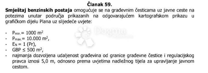 Prema prostornom planu mogućnost gradnje benzinske pumpe uz ostale popratne sadržaje