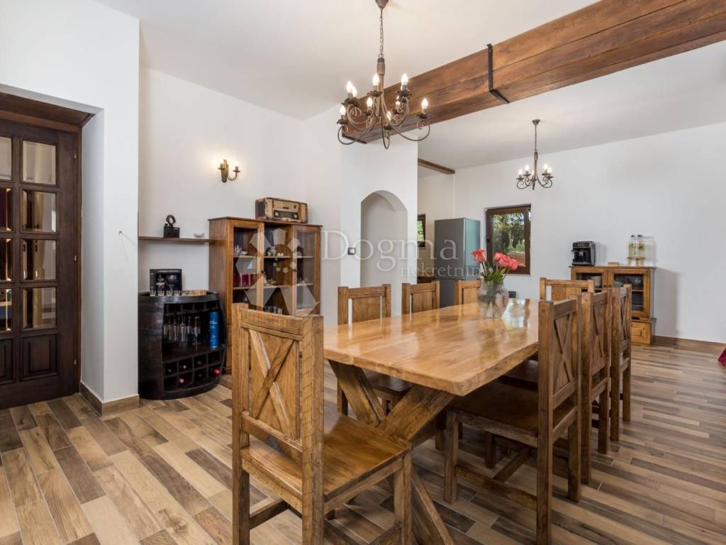 Na okućnici sa južne strane se smjestio bazen , konoba/vrtna kućica, pored bazena, roštilj , natkriveni parking za dva vozila.