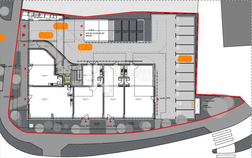 Dostupno je 11 vanjskih parkirnih mjesta i 41 parkirno mjesto u podzemnoj garaži.