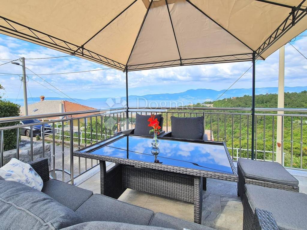 U ponudi imamo samostojeću kuću s fenomenalnim pogledom na cijeli Kvarnerski Zaljev. Kuća se nalazi u mirnom okruženju obiteljskih kuća, u slijepoj ulici s toga vlasnicima osigurava privatnost.
