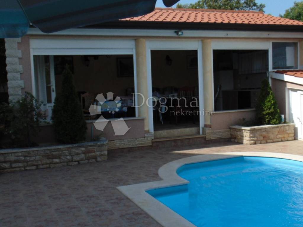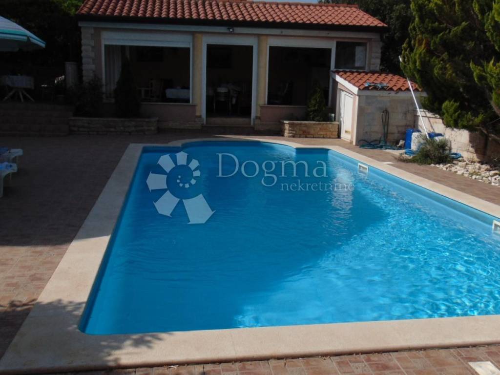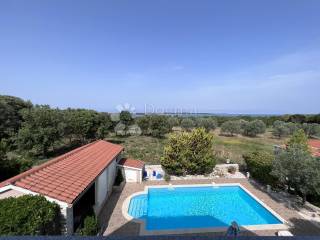 Kuća je dvokatnica koja je koncipirana na način da se u prizemlju nalazi veliki stan sa 3 spavaće sobe i 3 kupaone, velikim dnevnim boravkom sa kuhinjom i kaminom, te velika terasa koja je zatvorena te pruža brojne mogućnosti. Iz prizemlja se izlazi na bazen koji je veličine 8 x 4 sa rimskim ulazom i sunčalištem. Pored bazena se nalazi i