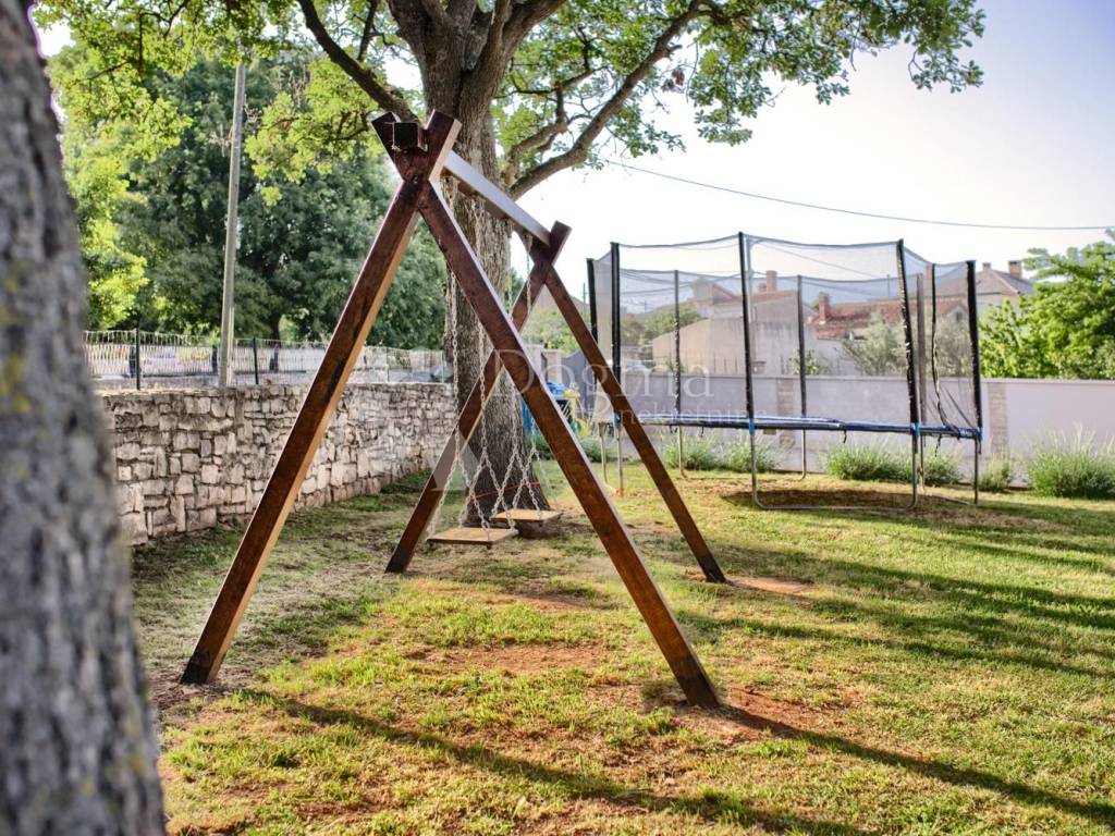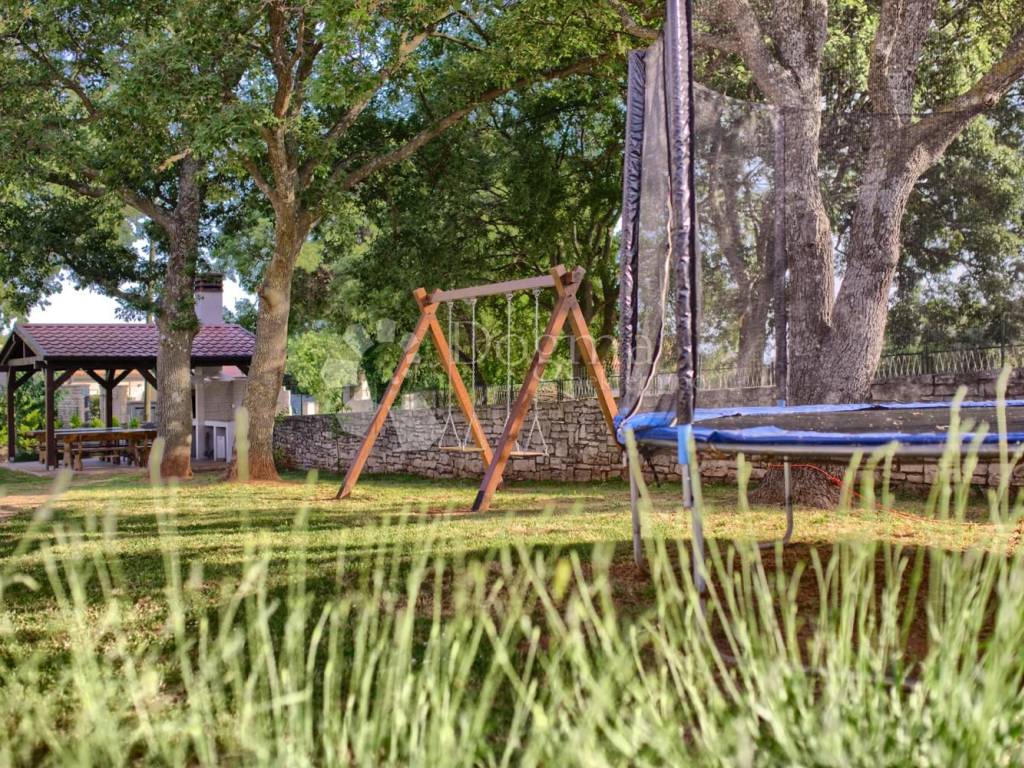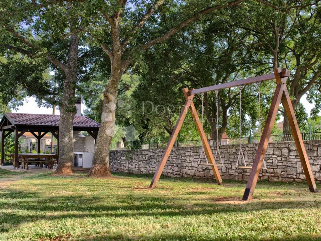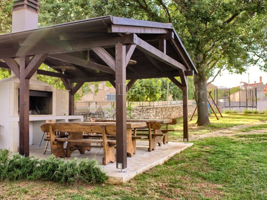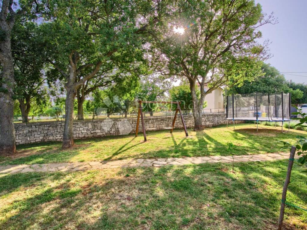 Kući pripada i okućnica ukupne površine 932m2,na kojoj se nalazi garaža i konoba površine 55m2 te sjenica sa vanjskim kaminom za roštilj površine 25m2.