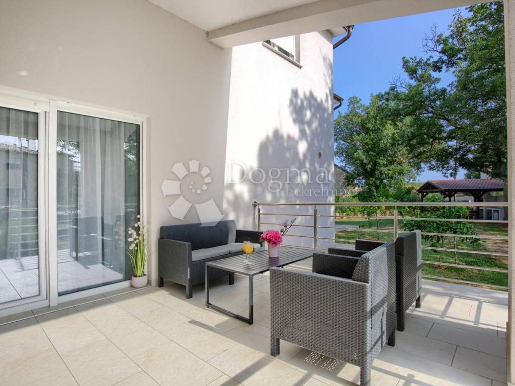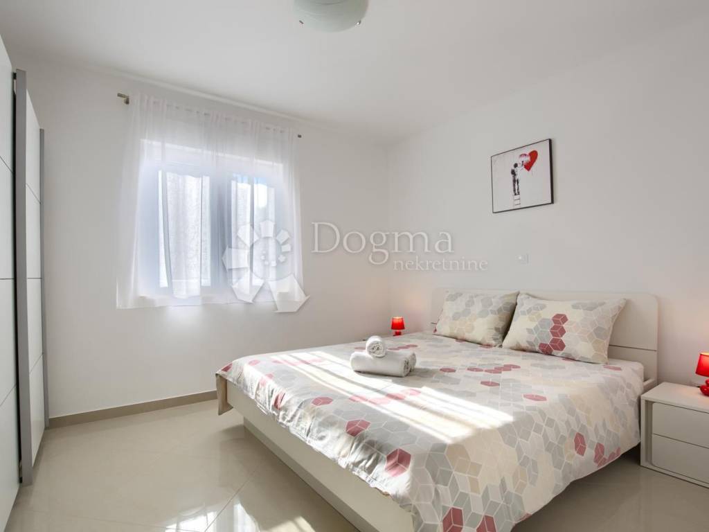 Prva veličine 69 m2 od tri spavaće sobe,dvije kupaonice,kuhinja s dnevnim boravkom i blagovaonom s izlazom na prostranu terasu i dvorište.