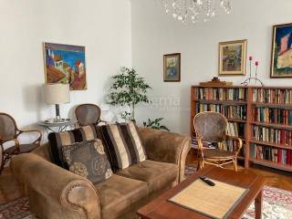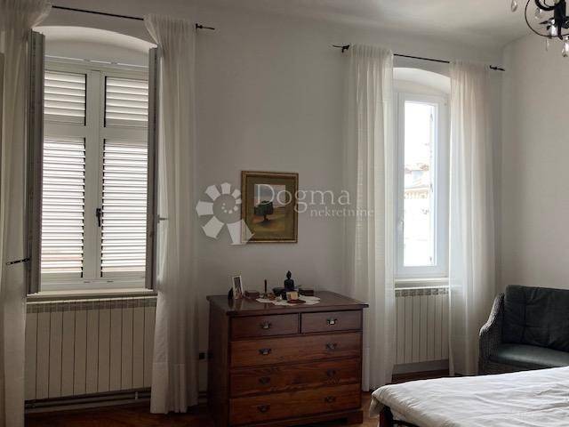 Ako volite arhitekturu starijih riječkih zgrada, velike i raskošne prostorije, visoke stropove, puno prozora, ovaj gospodski stan, u samom srcu Rijeke, je prilika za vas. Adaptiran je prije par godina, novi su mu prozori, kupaonica, sprovedeno etažno centralno grijanje na plin, očuvani parket. Opremljen je novijim vintage namještajem koji se savršeno uklapa u cijelu priču zgrade sa početka prošlog stoljeća. Iako je na četvrtom katu, penjući se stubištem, u vanjskom hodniku možete se odmoriti na, za to predviđenim nišama u zidu, pritom uživajući u interijeru same zgrade. Stan se sastoji od kuhinje sa špajzom i izlazom na manji balkon koji ima pogled na jedan od ljepših kortila. Dnevni boravak, blagovaona i spavaća soba su prepune svjetla i raskošnog interijera koji odiše šarmom prošlih vremena. Tu zauzime posebno mjesto i nezaobilazna kaljeva peć kao izuzetan ornament. Posebno je kupaonica i wc i imamo još jednu pomoćnu sobu, nalik vešeraju. Ova je nekretnina odlična za život, ali i investicija za dnevni najam zbog blizine kulturnih i svih ostalih sadržaja.
