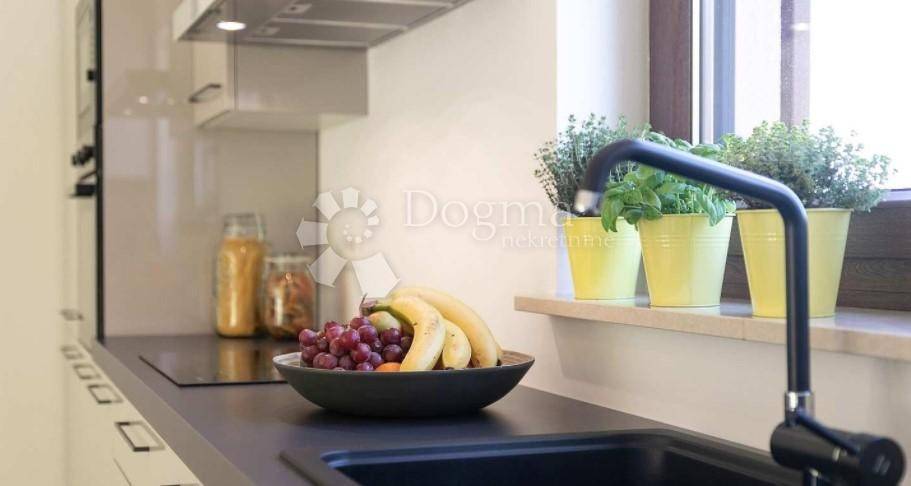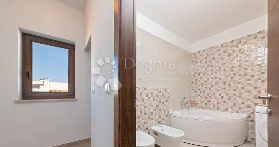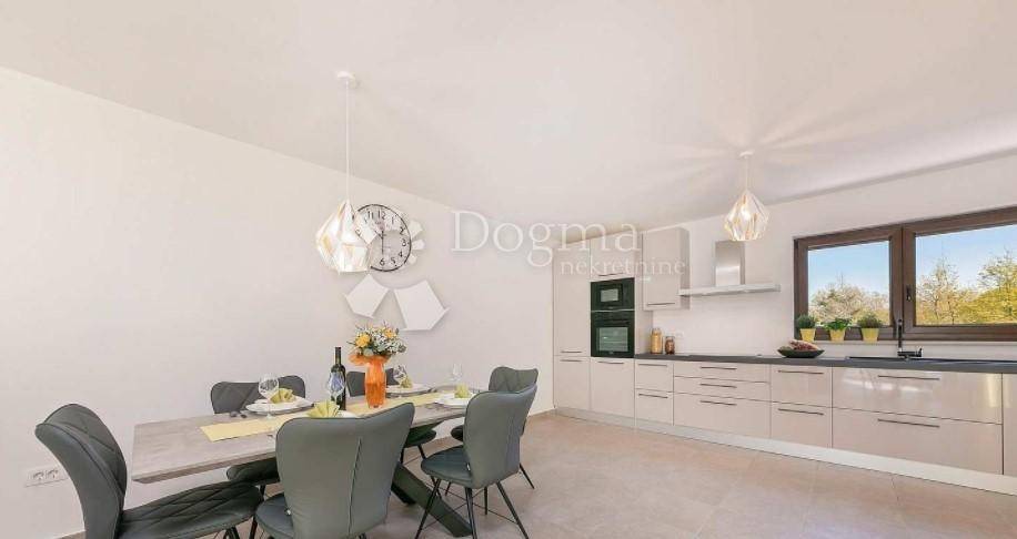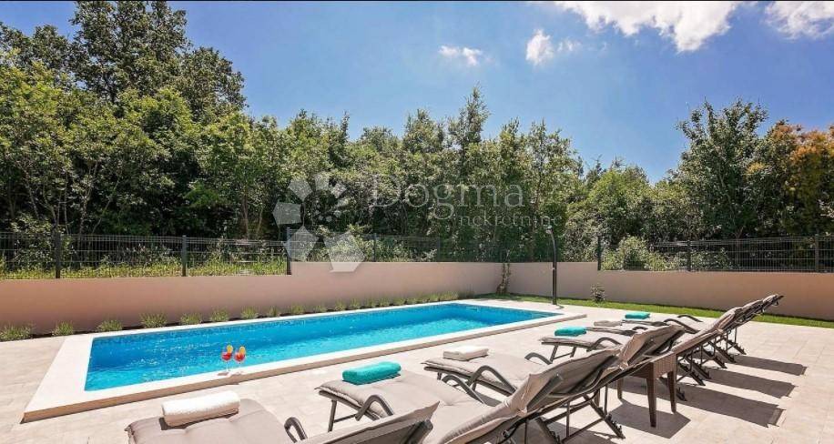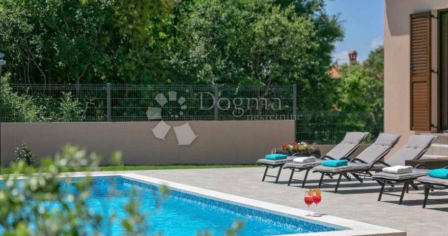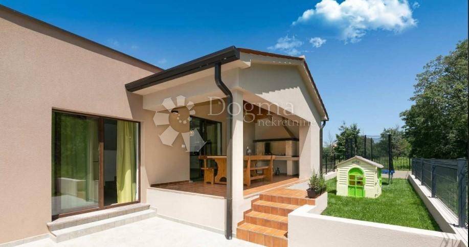 Sama vila prostire se na zelenoj okućnici od 700 m,a budućima kupcima nudi i otvoreni bazen od 32 m sa ležaljkama, dječje igralište, natkrivenu terasu sa stolom i stolicama za objedovanje na otvorenom te zidani roštilj, dva parkirna mjesta u sklopu okućnice i dva parking mjesta u garaži.