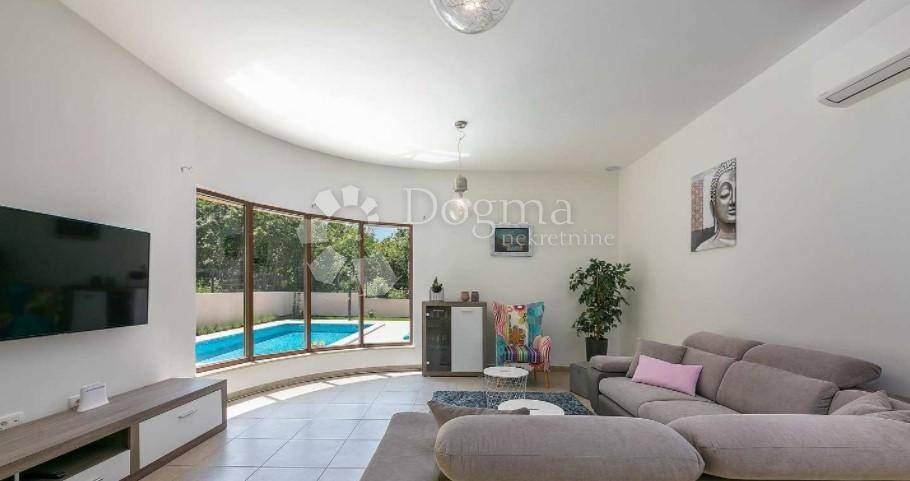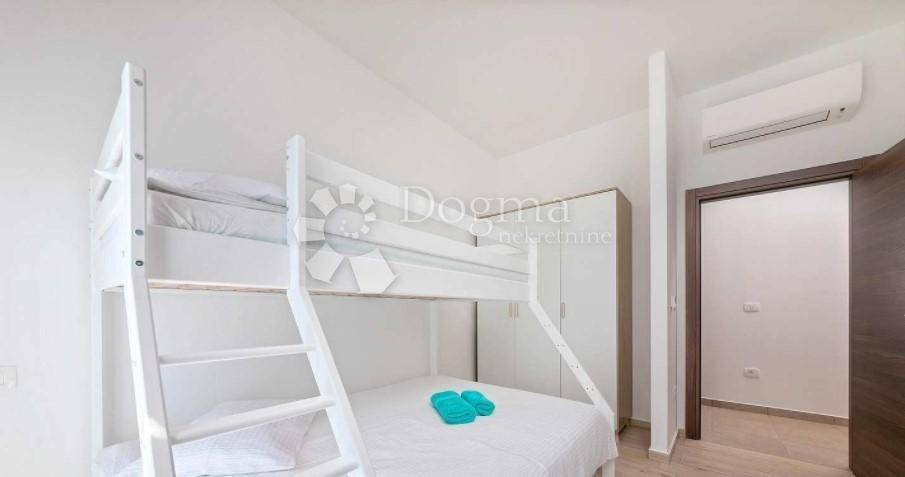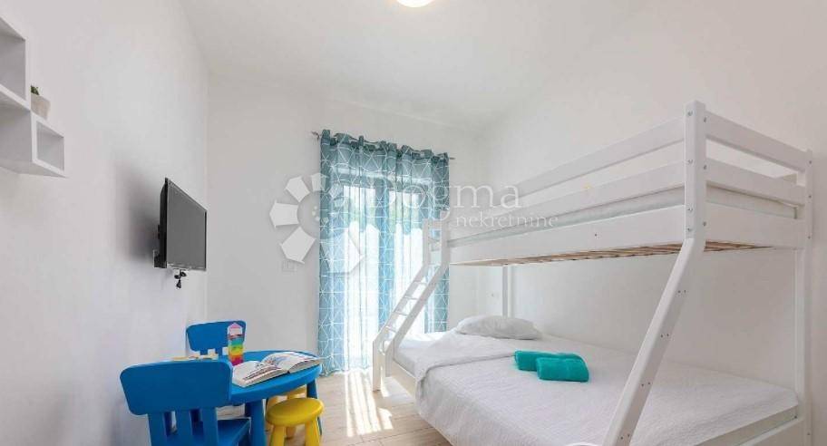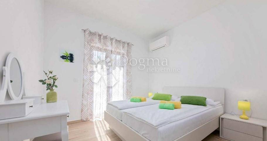 Moderna i praktična Villa rasprostire se na 205 m a sastoji se od potpuno opremljene kuhinje sa blagovaonicom s izlazom na terasu, svijetlim i prostranim dnevnim boravkom kojim dominira staklena stijena sa koje se pruža pogled na bazen, hodnika, spavaće sobe sa bračnim krevetom, spavaće soba sa krevetima na kat i, jedna spavaća soba sa bračnim krevetom i vlastitom kupaonicom. Sve sobe su klimatizirane i imaju izlaz prema bazenu.