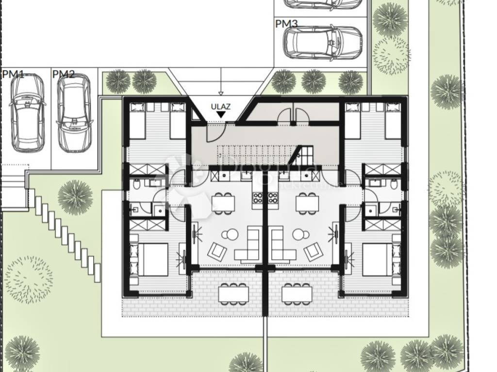 Radi se o projektu modernog i luksuznog dizajna, sačinjenog od četiri stambena objekta s po četiri stambene jedinice ( po dvije u prizemlju i dvije na katu ).
