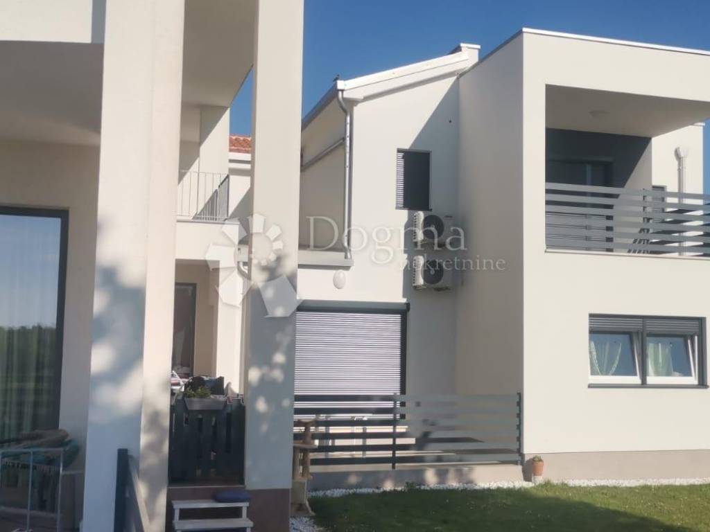 Ova moderna kuća, smještena na velikom terenu od 1320 m, sastoji se od dvije povezane građevine s ukupno šest stambenih jedinica. Gotovo iz svake prostorije pruža se očaravajući pogled na more, što rijetko koga ostavlja ravnodušnim. Na prostranom terenu nalazi se bazen, popločane terase za sunčanje, te montažna građevina koja trenutno služi kao radionica, a može se prenamijeniti u garažu.
