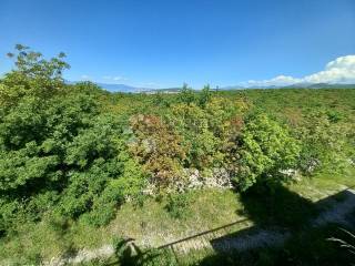 Teren je blago nakošen pod sitnim raslinjem i djelomično šumom. Pogled na more. Struja i voda u neposrednoj blizini.