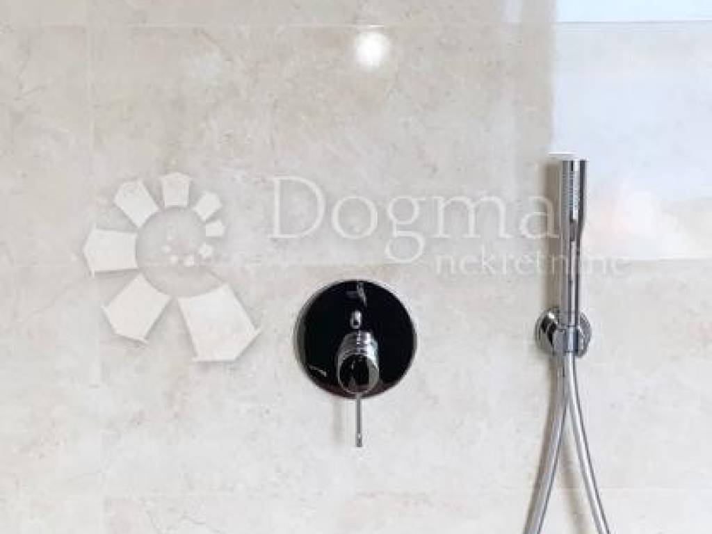 Samo najkvalitetnija oprema ugrađivana je u stan. Podovi u dnevnoj sobi i u spavaćim sobama su od prvoklasnog hrastovog višeslojnog parketa. Keramika u kupaonicama i hodnicima je prvoklasna talijanska keramika velikog formata, ponegdje sa reljefnom obradom. Kupaonska slavina i tuš ruža, slušalica i baterja su GROHE linija Essence, sa podžbuknom montažom. Umivaonik je Villeroy-Boch, WC školjka je Villeroy-Boch slim line, bez ruba sa direct flush ispiranjem i slim sporospuštajućom daskom. Vodokotlići su također Villeroy-Boch. Kupaonice su opremljene el. podnim grijanjem. Vanjska stolarija je drvo-aluminij, velikih formata. Dvije spavaće sobe opremljene su polu francuskim otvorima dimenzija 180 x 170 cm i pružaju nevjerojatan pogled čak i dok ležite u krevetu. Dnevni boravak ima staklenu stjenu