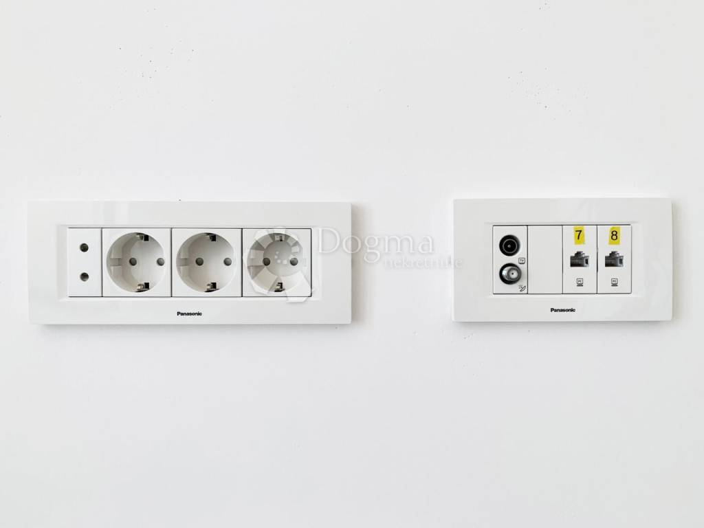 dimenzija 320 x 240 cm. Sva električna instalacije je Panasonic, a u svim sobama izvedena je instalacija interneta i SAT TV. Spavaće sobe su opremljene sa u prosjeku 9 el. izlaza-ulaza kao visoki hotelski standard. Svaka soba je klimatizirana. Unutarnja sobna vrata su slovenski proizvod Lip Bled sa uzorkom Arctic hrast 3D CPL, dodatno zvučno izolirana. Ulazna sigurnosna vrata su Dierre, poznati talijanski proizvođač. Na krovu se nalazi krovna terasa, gdje je instalirana voda, odvodnja i struja i može se ugraditi Jacuzzi, ljetna kuhinja ili BBQ. Krovna terasa nije za zajedničko korištenje već se kupuje odvojeno i nije u cijeni stana. Okoliš zgrada bogato je uređen autohtonim biljnim vrstama. Najznačajnija prednost ove nekretnine je mir koji je rezultat pozicije odmah uz zeleni pojas, zelenilo koje okružuje zgradu, i nevjerojatan panoramski pogled.
