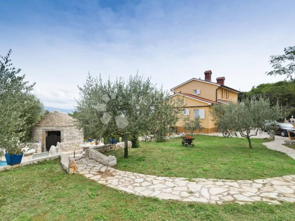 Uz ovu divnu kuću prostire se okućnica od 1900 m na kojoj se nalazi bazen uz uređeni kameni prilaz sa autohtonim istarskim kažunom.