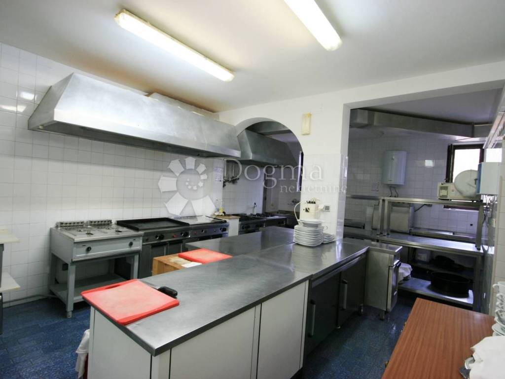 Prizemlje glavnog objekta sastoji se od potpuno opremljenog restorana kapaciteta 80 sjedećih mjesta plus 120 na terasi. Osim kuhinje koja je veličine 30 m tu su i ulazni prostor s vrhunskim šankom, prostorija za pripremu hrane, ured, garderoba za personal, tuš i toalet za personal, muški i ženski toalet za goste, skladište i kotlovnica. Unutarnji prostor za usluživanje veličine 65 m podijeljen u dvije sale a terasa za usluživanje površine je 45 m. Sva oprema i inventar restorana su uključeni u prodajnu cijenu. Oprema je visoke kvalitete i uključuje dva profesionalna roštilja na plin i na ugalj. Podrum od 6 m pogodan je za dodatno skladištenje. U dijelu pomoćnog objekta nalazi se i frižider/komora kapaciteta 5000 kg.