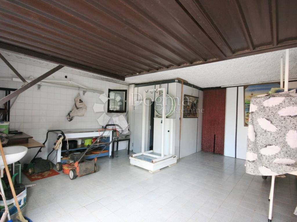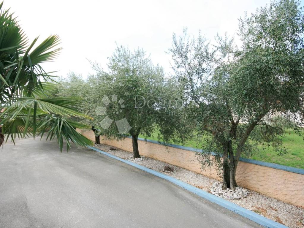 Okućnica je izuzetno uredna i lijepo održavana s većim brojem odraslih maslina, palmama, povrtnjakom i fontanom. Dio okućnice, 600 m, predviđen je za parkiralište kapaciteta 30 auta.