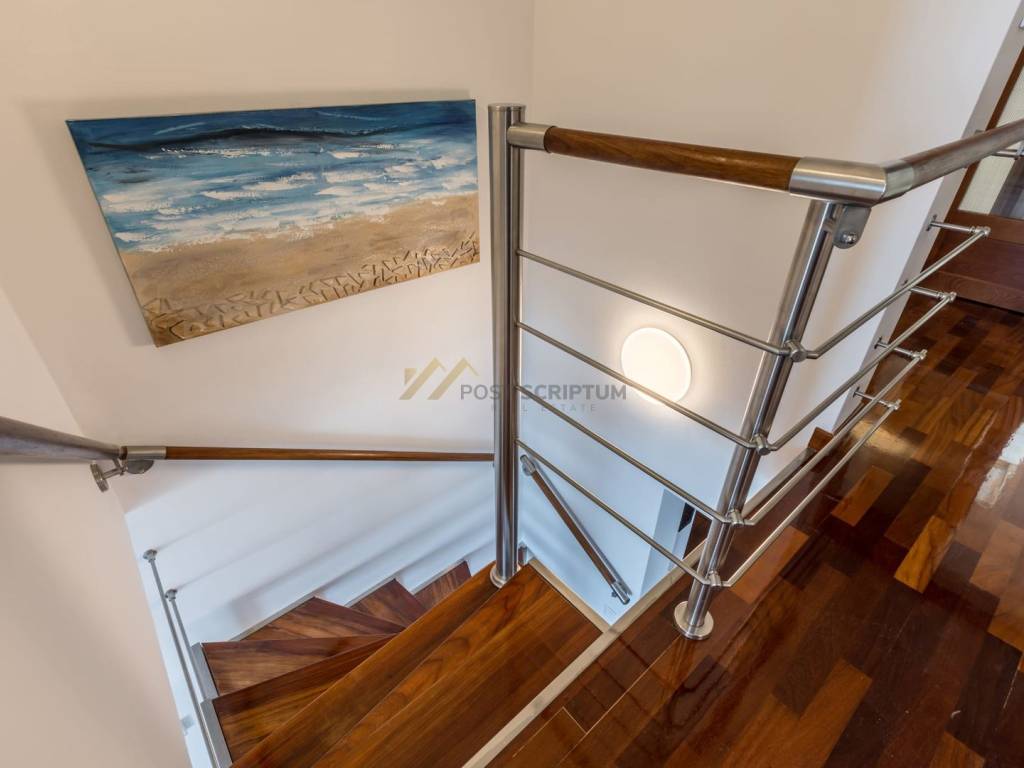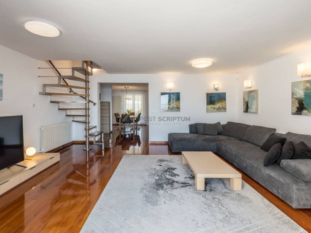 Na predjelu Žnjan nalazi se ovaj predivan, komforan stan od 150m2, položen na dvije etaže (treći i četvrti kat), odmah uz glavnu šetnicu s otvorenim pogledom na more.