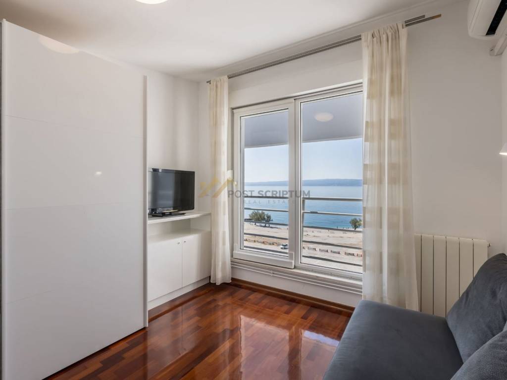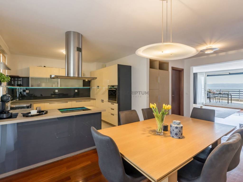 Ovaj luksuzan stan prepun je dnevnog svjetla, izrazito osunčan, komforan, a njegova idealna pozicija uz more čini ga oazom za ugodno življenje.