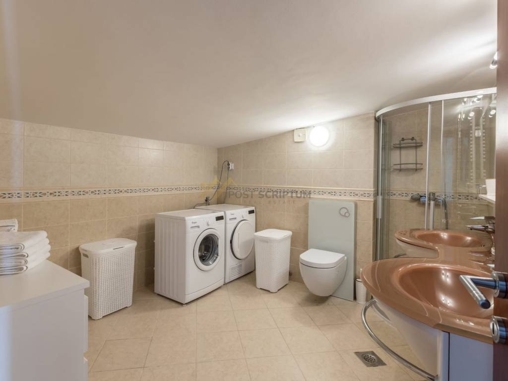 Stan je opremljen novim i kvalitetnim namještajem, te svim uređajima (TV, klima, perilica rublja, sušilica rublja, perilica posuđa).
