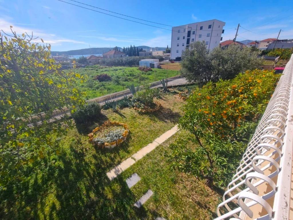 Na prodaju je zanimljiva apartmanska kuća smještena na odličnoj lokaciji u Segetu Donjem, u blizini samog centra grada Trogira. Nekretnina se nalazi na zemljištu od 484 m2, a ukupna bruto građevinska površina kuće iznosi 493,14 m2, raspoređena na četiri etaže: prizemlje, prvi, drugi i treći kat. Katovi su povezani unutarnjim stubištem.U prizemlju se nalazi šarmantna konoba s kuhinjom, ostava, garaža za jedno vozilo, kupaonica te dvije pomoćne prostorije (97,83 m2).Prvi kat obuhvaća dnevni boravak, kuhinju, blagovaonicu, hodnik, tri spavaće sobe i kupaonicu (93,75 m2). Iz dnevnog boravka i jedne spavaće sobe pruža se izlaz na natkriveni balkon (27.37 m2).Na drugom katu nalazi se gotovo identičan prostrani trosobni stan (93,91 m2) s velikim natkrivenim balkonom (27,37 m2) i manjim balkonom (3.98 m2).Treći kat čini neuređeni stambeni prostor (45,15 m2) s prekrasnom prostranom terasom (86,25 m2) koja nudi impresivan panoramski pogled na more i okolicu.Kući pripada i lijepo uređen, ograđen i održavan vrt zasađen mediteranskim biljkama. U vrtu se nalazi i vanjski roštilj, a na popločanom dijelu okućnice ima dovoljno prostora za parkiranje više motornih vozila.Kuća je odlično održavana, i odmah useljiva no zahtijeva modernizaciju prostora i uređenje trećeg kata. Prodaje se potpuno namještena i opremljena. Grijanje i hlađenje osigurano je klima uređajima, a kroz cijelu kuću provedeno je i centralno grijanje na struju.Zahvaljujući južnoj orijentaciji, nekretnina je obasjana sunčevom svjetlošću tijekom cijelog dana, pružajući ugodan i topao ambijent.Nekretnina se nalazi na izvrsnoj lokaciji, svega 1 km od centra grada Trogira, u blizini mora i svih potrebnih sadržaja za svakodnevni život. Zračna luka Split udaljena je svega 6 km, dok je centar Splita na 28 km udaljenosti.