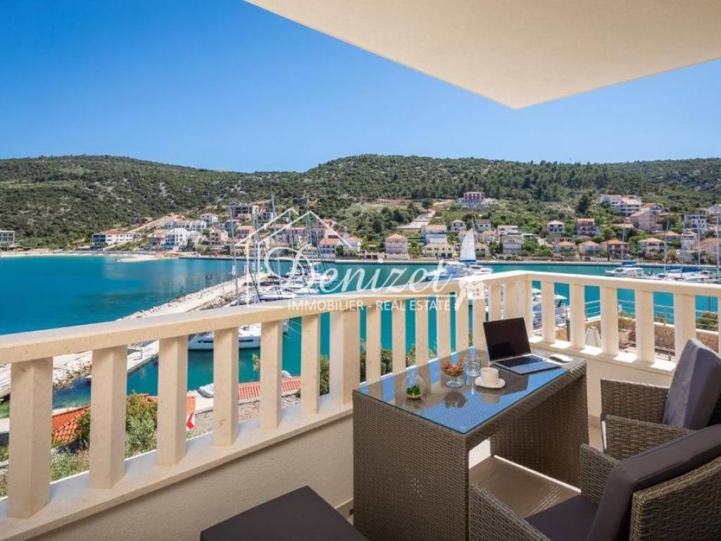 Udaljenosti: od mora 50 m, od grada Trogira 12 km, a od zračne luke Split 17 km.