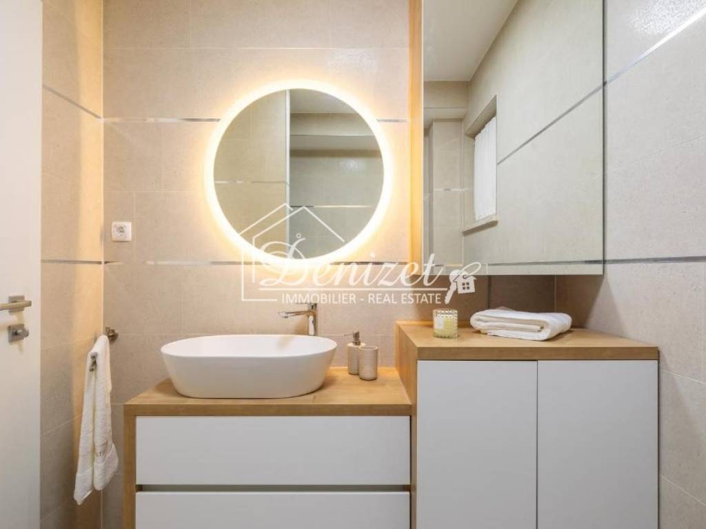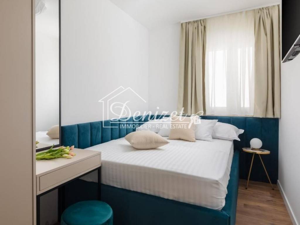 Svi stanari imaju pravo koristiti zajednički bazen i sunčalište, dječje igralište, te teretanu koja se nalazi u prizemlju zgrade. Izvrsna lokacija, u blizini mora, centra naselja i svih sadržaja. Stan je idealna oaza za one željne mira i odmora, ali i one koji traže isplativu investiciju u turističke svrhe.
