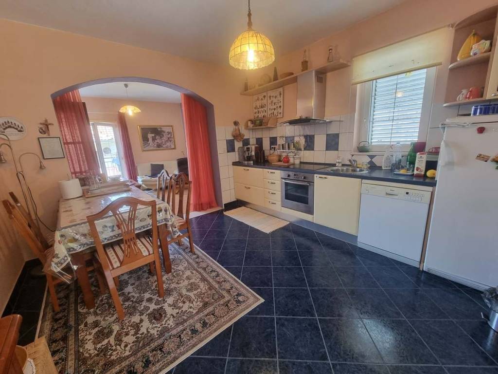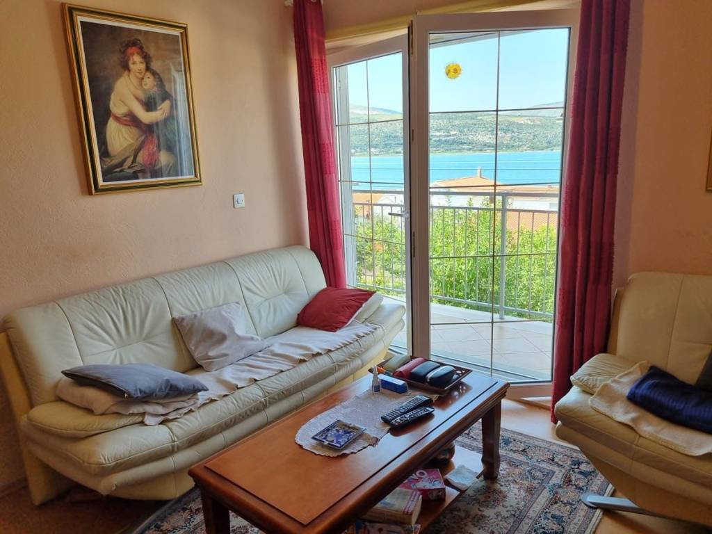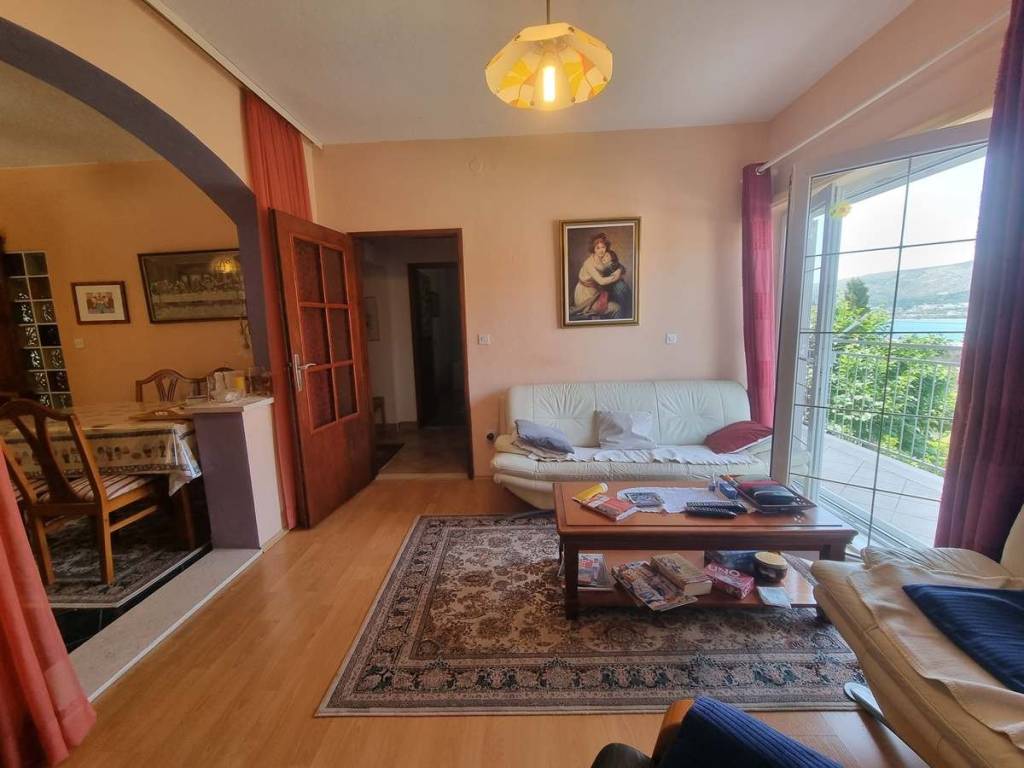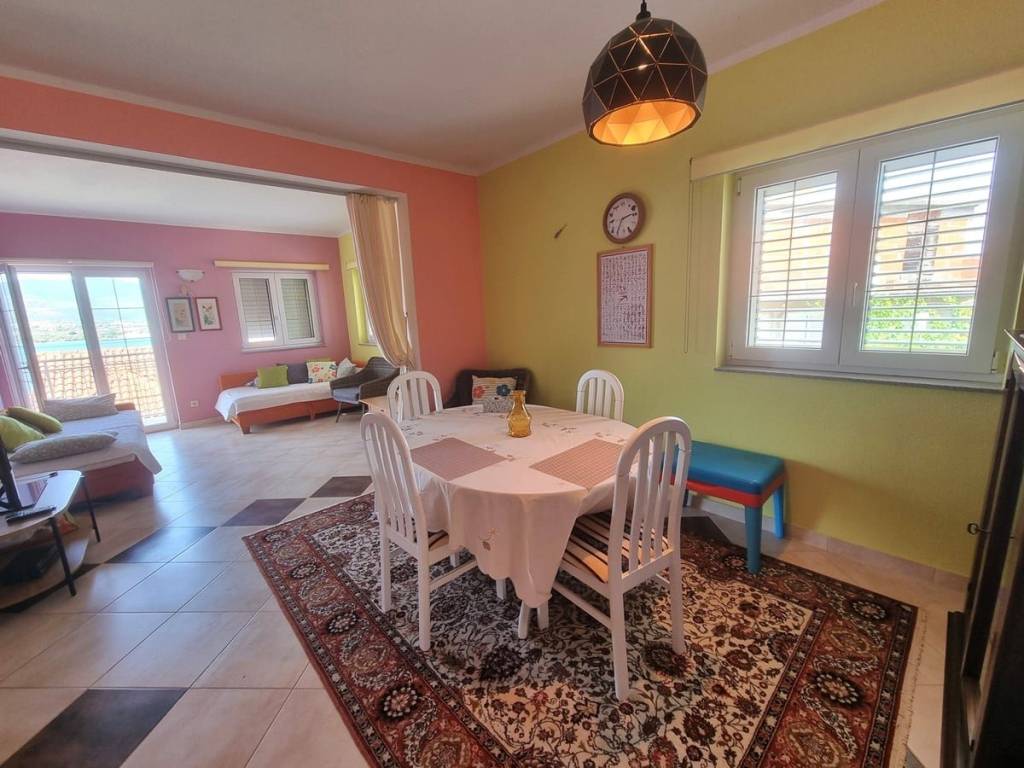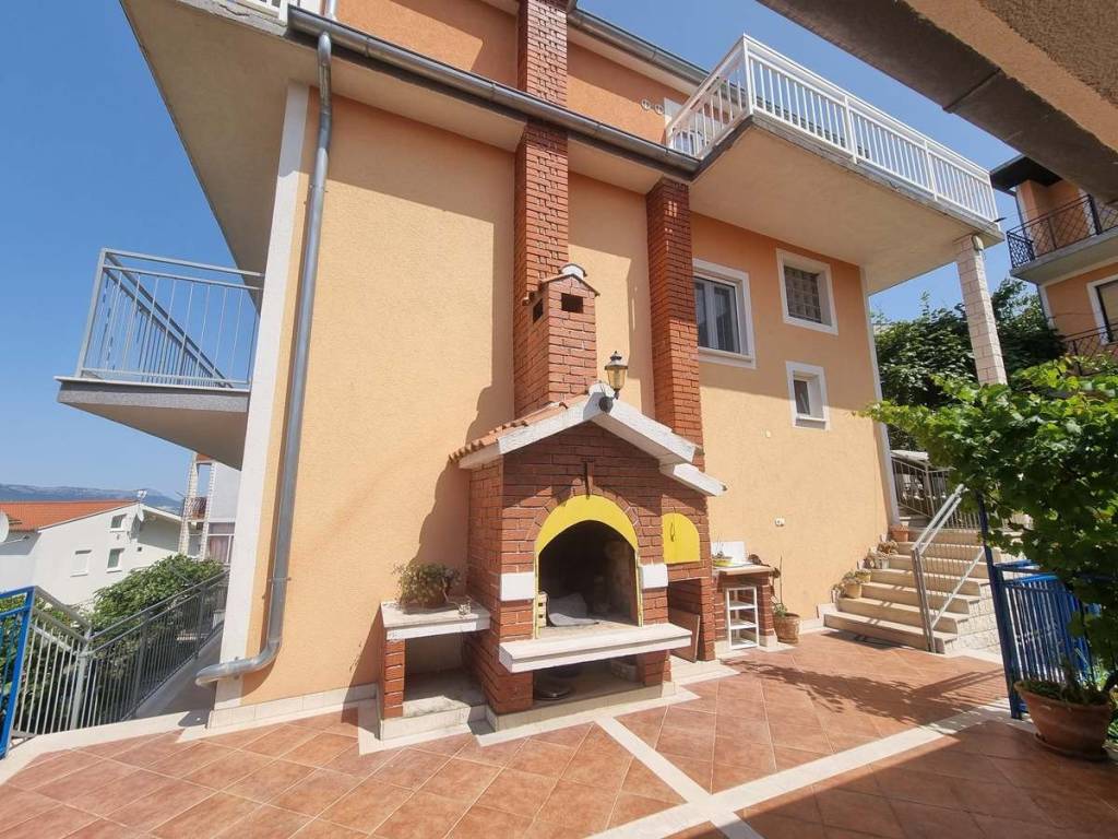 Apartmanska kuća s pogledom na more u okolici Trogira je na prodaju. Kuća sadrži četiri etaže: prizemlje, visoko prizemlje, prvi i drugi kat. Ima ukupnu neto površinu od 320 m2. Nalazi se na zemljištu od 513 m2.U prizemlju se nalazi jednosobni stan, garaža i sprema. Stan se sastoji od kuhinje, dnevnog boravka, jedne spavaće sobe i kupaonice.Visoko prizemlje sadrži stan s kuhinjom, blagovaonicom, dnevnim boravkom, kupaonicom, dvjema spavaćim sobama i terasom.Na prvom katu se također nalazi stan koji se sastoji od velikog dnevnog boravka, kuhinje, blagovaonice, jedne spavaće sobe, kupaonice, spreme i terase.Na drugom katu se nalazi nedovršeni stan koji je u roh-bau stanju. Sastoji se od dnevnog boravka, kuhinje, blagovaonice, kupaonice i jedne spavaće sobe. Okružuje ga terasa s koje se pruža panoramski pogled na more.Kuća je u održavanom stanju, s uređenom okućnicom, garažom i vanjskim parking mjestima. Na okućnici se nalazi i lijepa nadstrešnica s vanjskim prostorom za objedovanje te vanjski roštilj. Zanimljivo je što se sa svih etaža kuće pruža prekrasan pogled na more.Nekretnina je udaljena svega 200 m od mora, 4 km od Trogira i 7 km od zračne luke Split.