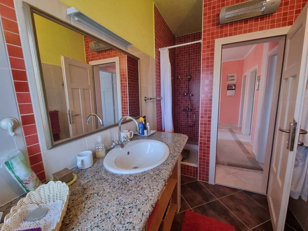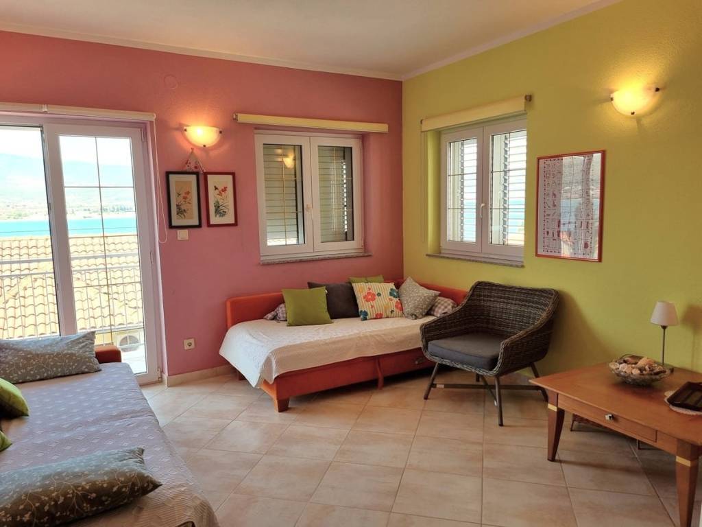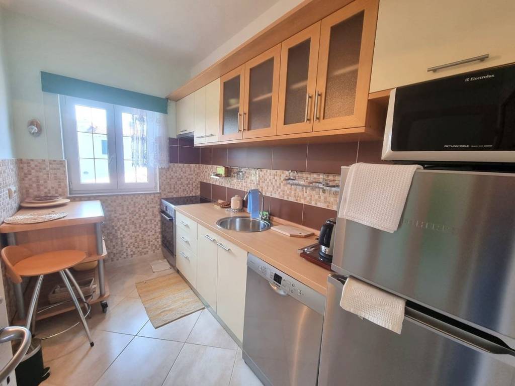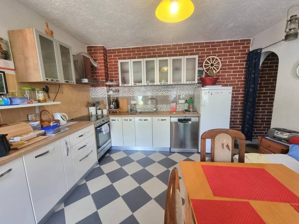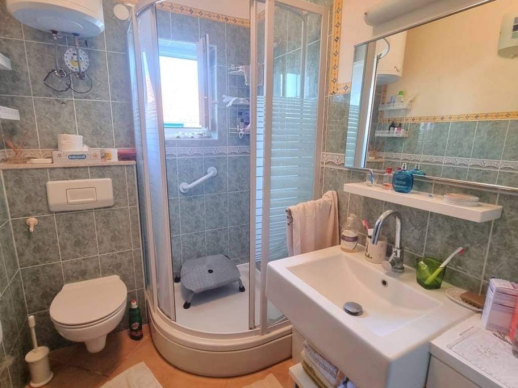 Apartmanska kuća s pogledom na more u okolici Trogira je na prodaju. Kuća sadrži četiri etaže: prizemlje, visoko prizemlje, prvi i drugi kat. Ima ukupnu neto površinu od 320 m2. Nalazi se na zemljištu od 513 m2.U prizemlju se nalazi jednosobni stan, garaža i sprema. Stan se sastoji od kuhinje, dnevnog boravka, jedne spavaće sobe i kupaonice.Visoko prizemlje sadrži stan s kuhinjom, blagovaonicom, dnevnim boravkom, kupaonicom, dvjema spavaćim sobama i terasom.Na prvom katu se također nalazi stan koji se sastoji od velikog dnevnog boravka, kuhinje, blagovaonice, jedne spavaće sobe, kupaonice, spreme i terase.Na drugom katu se nalazi nedovršeni stan koji je u roh-bau stanju. Sastoji se od dnevnog boravka, kuhinje, blagovaonice, kupaonice i jedne spavaće sobe. Okružuje ga terasa s koje se pruža panoramski pogled na more.Kuća je u održavanom stanju, s uređenom okućnicom, garažom i vanjskim parking mjestima. Na okućnici se nalazi i lijepa nadstrešnica s vanjskim prostorom za objedovanje te vanjski roštilj. Zanimljivo je što se sa svih etaža kuće pruža prekrasan pogled na more.Nekretnina je udaljena svega 200 m od mora, 4 km od Trogira i 7 km od zračne luke Split.