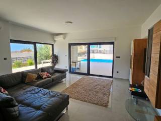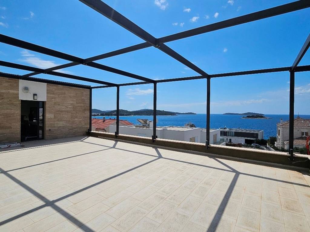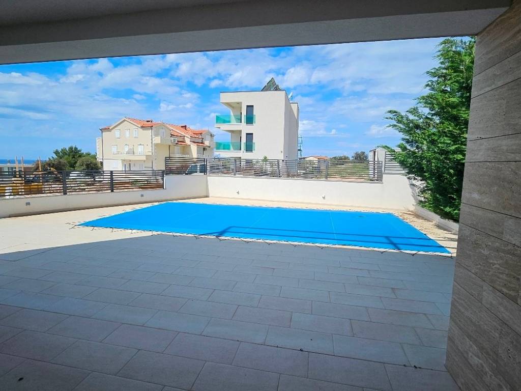 Smještena na zemljištu od 640 m2, ova prostrana vila ukupne površine 380 m2, katnosti prizemlje i dva kata povezani unutranjim stubištem smjestila se na samo par minuta hoda do mora. Prizemlje sadrži: garažu, praonicu, wc, ostavu, prostrani dnevni boravak i kuhinju površine 63 m2, dvije lijepe lođe od 16 m2 i 17 m2 te bazen 26 m2. Na prvom katu su: hodnik, četiri spavaće sobe (13 m2, 16 m2, 21 m2 i 22 m2) te tri kupaonice. Iz dvije spavaće sobe pristupa se lođi od 16 m2 sa koje se pruža pogled na more. Na drugom katu smjestila se prostorija od 34 m2, hodnik i kupaonica. Prostorija od 34 m2 može poslužiti kao fitnes prostorija ili dodatna kuhinja i prostor za opuštanje s obzirom da se iz te prostorije pristupa krovnoj terasi površine od 77 m2 sa koje se pruža neodoljivi panoramski pogled na more.Villa je namještena i opremljena, sadrži nekoliko parking mijesta, mali uređeni vrt, južne orjentacije, ima ravan pristup te je kvalitetno građena. Udaljenost od uređene šljunčane plaže je svega 7 min laganog hoda (500 m), od centra Rogoznice i Marine Frape 7 min autom (2 km), od međunarodne zračne luke Split 34 km (40 min autom).