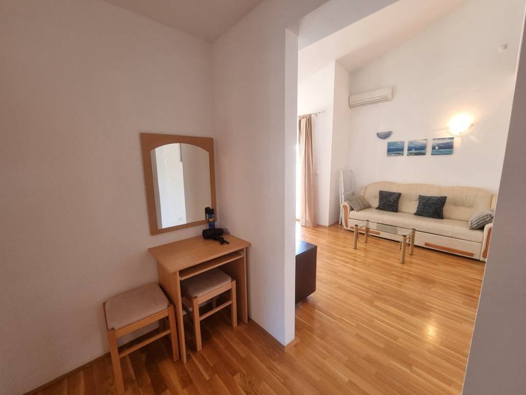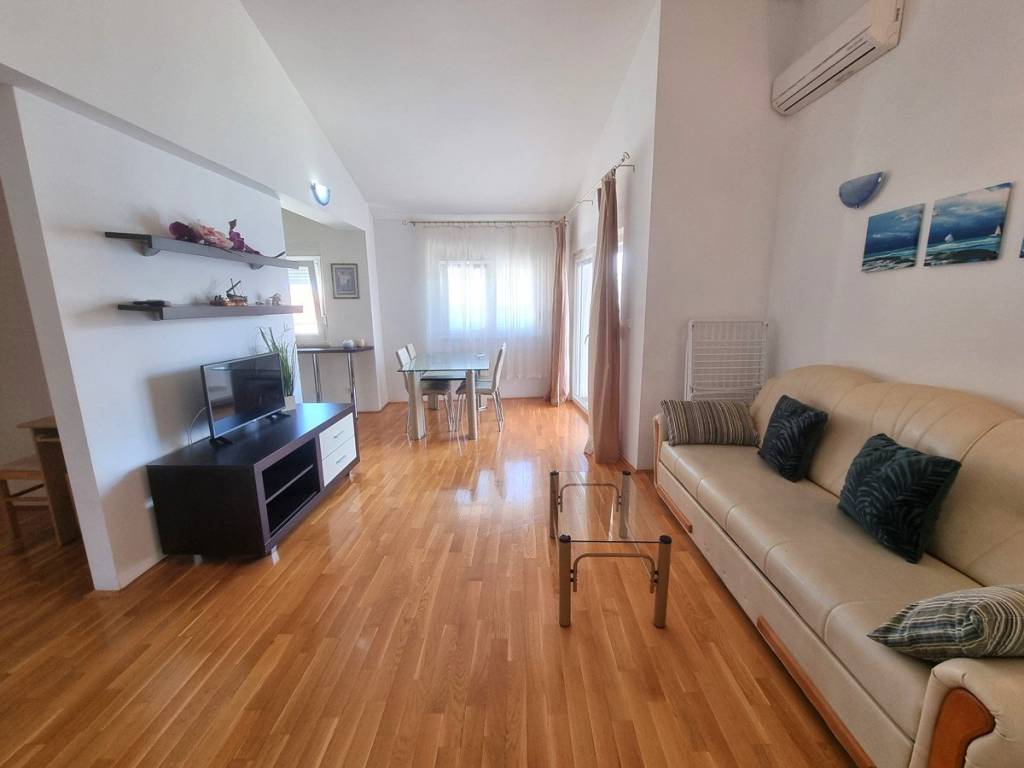 Na prodaju je stan u stambenoj zgradi koja se nalazi na izvanrednoj lokaciji, odmah pored prekrasne šljunčane plaže i mora u naselju Okrug Gornji. Zgrada ima ukupno 16 stambenih jedinica raspoređenih na pet etaža: podrum, prizemlje, 2 kata i visoko potkrovlje. Stan na prodaju se smjestio u visokom potkrovlju, a sastoji se od hodnika, wc-a, kuhinje s dnevnim boravkom i blagovaonicom, kupaonicom, predsoblje i dvije spavaće sobe ukupne podnepovršine 53,47 m2 s pripadajućim balkonom od 6,61 m2. S balkona se pruža prekrasan pogled na more. S obzirom na to da stan ima visoki strop, također ima i galeriju koja može biti dodatna spavaonica ili čak spremište. Stanu pripada i jedno vanjsko parking mjesto. Prodaje se kompletno namješten i opremljen.Osim što je idealan kao mirno utočište za odmor, ova nekretnina predstavlja i izvrsnu priliku za turističko iznajmljivanje. Smješten je u neposrednoj blizini svih važnih sadržaja za svakodnevni život – trgovina, restorana, kafića i ostalih pogodnosti koje čine život ugodnijim.Udaljenost od grada Trogira iznosi 4 km, od zračne luke Split 10 km, a od centra grada Splita 32 km.
