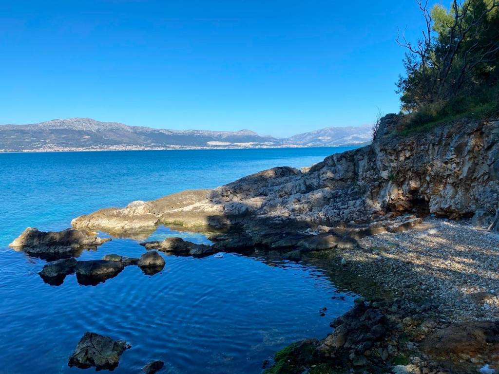 Prostrano građevinsko zemljište od 6 472 m2 na prekrasnoj poziciji na otoku Čiovu.  Proteže se do mora i obale te pruža otvoreni prekrasan pogled. U neposrednoj blizini nalazi se sva potrebna infrastruktura (struja, voda).Zemljište se nalazi unutar obuhvata Urbanističkog plana uređenja središnjeg dijela naselja – Slatine 3. Prema planu, veći južni dio zemljišta se nalazi u građevinskoj zoni stambene namjene (S), dok je manjim sjevernim dijelom unutar zone R3 – uređena morska plaža. Zemljište je jednim dijelom i unutar koridora prometnice.Na području stambene namjene je predviđena izgradnja stambenih građevina. Moguća je nova gradnja višeobiteljskih samostojećih ili dvojnih objekata.U zoni R3 dozvoljavaju se manje intervencije na obalnom rubu u smislu oblikovanja plaže (obnavljanje šljunka, uređenje platoa i sunčališta) i njene zaštite (izgradnja zaštitnih pera), kao i gradnja stepenica, rampa za invalide i tuševa.Uvjeti gradnje:najmanja površina građevne čestice unutar zona stambene namjene (S) na kojoj se može graditi samostojeća ili dvojna stambena građevina je 700 m2;minimalna širina građevne čestice (mjerena na mjestu građevnog pravca građevine) na kojoj se može graditi samostojeća stambena građevina je 18,0 m, dok je za dvojnu građevinu ta širina 14,0 m.maksimalni koeficijent izgrađenosti nadzemni građevne čestice može biti kigN=0,30, dok je za dvojnu građevinu kigN=0,35 (35%).maksimalni koeficijent iskorištenosti nadzemni građevne čestice može biti kisN=0,90 (90%), dok je za dvojnu građevinu kisN=1,05 (105%).maksimalna katnost samostojeće i dvojne stambene građevine je Po+P+2.maksimalna visina građevine je 10,0 m (u slučaju gradnje na kosom terenu 11,0 m).minimalna udaljenost samostojeće stambene građevine od ruba građevne čestice je 4,0 m, dok je ta udaljenost za dvojne građevine najmanje od 4,5 m.najmanja udaljenost građevine od državne ulice odnosno regulacijskog pravca iznosi 10 m, a od ostalih prometnica 5,0 m, te se u tom pojasu treba izvršiti obavezno ozeljenjavanje građevinske čestice;najmanje 40% površine građevne čestice mora se hortikulturno urediti kao procjedna površina sa visokim i niskim zelenilom.Ovo zemljište je izvrsna investicija, a zbog blizine mora i brojnih drugih sadržaja jedinstvena je prilika na tržištu. Nalazi na sjevernoj strani otoka Čiova, od mora je udaljeno svega 10 m. Udaljenost od Trogira iznosi 7 km, od zračne luke Split 11 km, a od centra grada Splita 30 km.