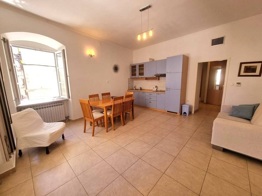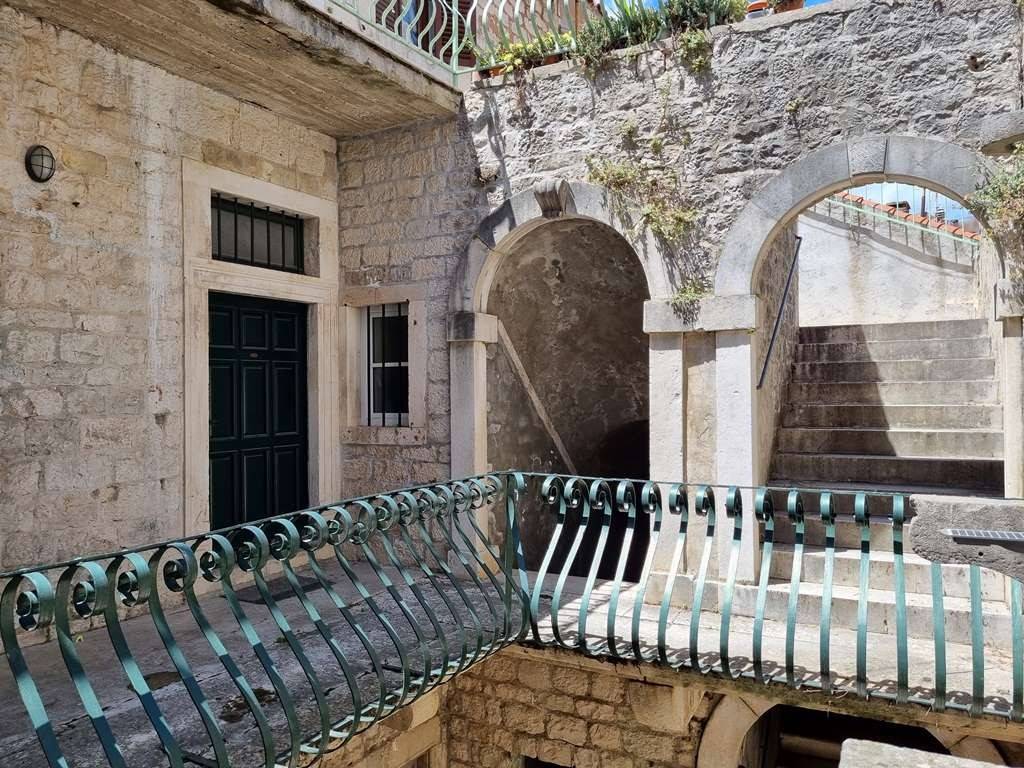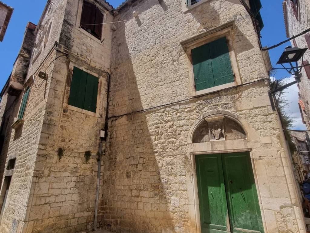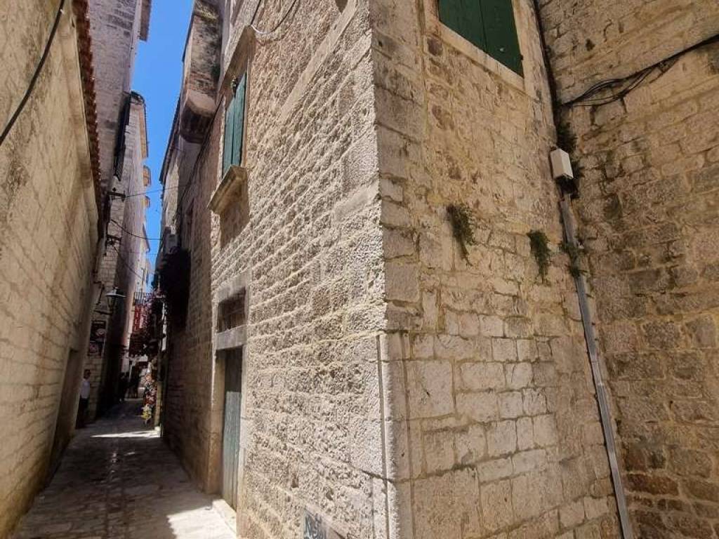 Eksluzivna i posebna ponuda naše agencije. Veoma zanimljiva ponuda ispod tržišne cijene. Trogir centar, na prodaju je nekretnina ukupne površine 231 m2 koja se sastoji od dva namještena stana te konobe smješteni u staroj jezgri UNESCO grada. Stanovi su položeni na prvom katu kamene kuće, ukupna površina stana S1 iznosi 65.33 m2 a sastoji se od dnevnog boravka i kuhinje, predsoblja, 2 spavaće sobe i kupaonice. Stan S2 ukupne površine 62.83 m2 sadrži: predsoblje, dnevni boravak s kuhinjom, 2 spavaće sobe i kupaonicu. Konoba je površine 103 m2 a smještena je u prizemlju kuće. Nekretnina je smještene na odličnoj lokaciji. Udaljenost od trogirske rive 100 m, od gradske plaže 1km, od međunarodne zračne luke Split 5.5 km. Predmetna nekretnina čini suvlasnički dio kamene kuće, u kući su ukupno 3 obitelji kao stanari.