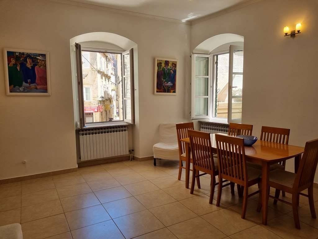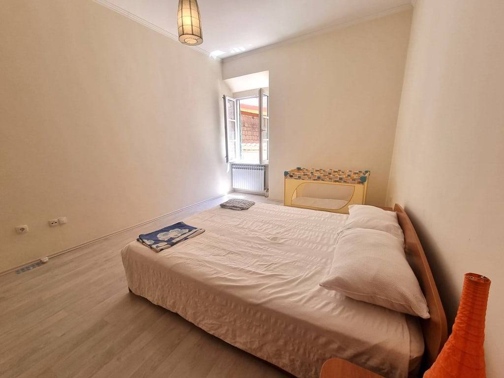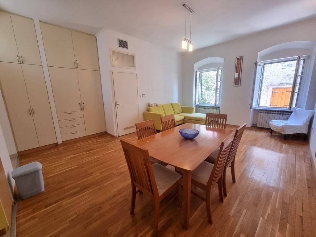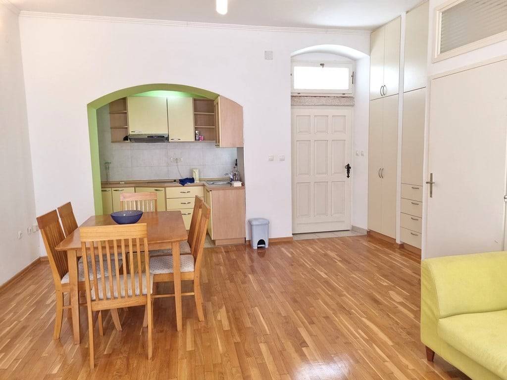 Eksluzivna i posebna ponuda naše agencije. Veoma zanimljiva ponuda ispod tržišne cijene. Trogir centar, na prodaju je nekretnina ukupne površine 231 m2 koja se sastoji od dva namještena stana te konobe smješteni u staroj jezgri UNESCO grada. Stanovi su položeni na prvom katu kamene kuće, ukupna površina stana S1 iznosi 65.33 m2 a sastoji se od dnevnog boravka i kuhinje, predsoblja, 2 spavaće sobe i kupaonice. Stan S2 ukupne površine 62.83 m2 sadrži: predsoblje, dnevni boravak s kuhinjom, 2 spavaće sobe i kupaonicu. Konoba je površine 103 m2 a smještena je u prizemlju kuće. Nekretnina je smještene na odličnoj lokaciji. Udaljenost od trogirske rive 100 m, od gradske plaže 1km, od međunarodne zračne luke Split 5.5 km. Predmetna nekretnina čini suvlasnički dio kamene kuće, u kući su ukupno 3 obitelji kao stanari.