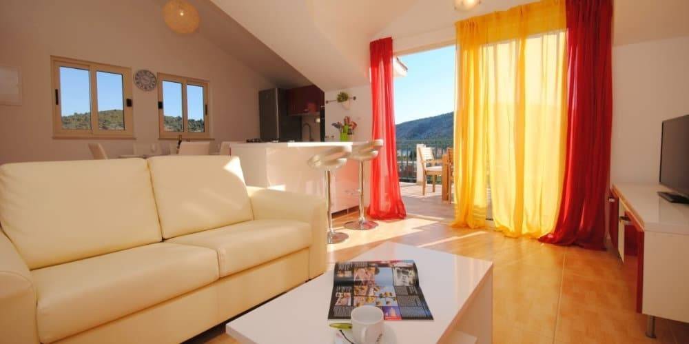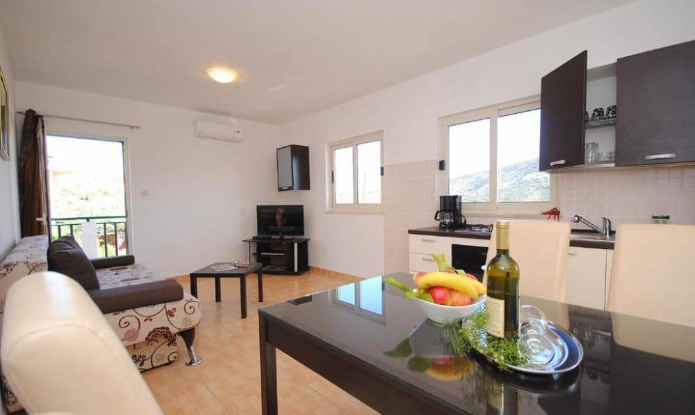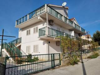Na prodaju je prostrana apartmanska kuća u naselju Vinišće, nedaleko od Marine. Kuća ima ukupnu bruto građevinsku površinu od 368 m2, a nalazi se na zemljištu od 464 m2. Sastoji se od 5 stambenih jedinica raspoređenih na tri etaže: prizemlje, prvi i drugi kat.U prizemlju se nalaze dva dvosobna stana. Prvi kat također sadrži dva dvosobna stana koji imaju izlaz na natkrivene terase s pogledom na more. Na drugom katu nalazi se prostrani stan s tri spavaće sobe. Stan okružuje velika terasa s koje se pruža lijepi pogled na more i okolicu. Svi stanovi su namješteni, klimatizirani i održavani. Na uređenoj okućnici nalazi se još i pomoćni objekt koji ima namjenu ljetne kuhinje, vanjski parking dovoljno velik za parkiranje 6 automobila i vanjski roštilj.Ova nekretnina je idealna kao investicija zbog već dobro uhodanog posla iznajmljivanja u turističke svrhe. Kuća se nalazi u mirnom području naselja, svega 230 m zračne udaljenost od mora. Od Marine je udaljena 6 km, od grada Trogira je udaljena 20 km, a od zračne luke Split 25 km.