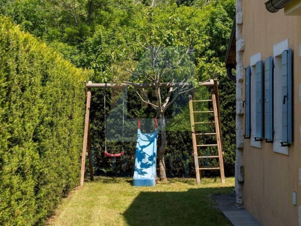 Okućnica uključuje bazen od 25 m, sunčalište, vanjski tuš i natkrivenu terasu s kaminom. Hortikulturno uređena, s automatskim navodnjavanjem, a visoke živice pružaju potpunu privatnost i intimu.