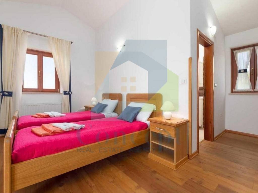 Parcela je ograđena, s električnim portunom i dva parkirna mjesta. Nekretnina se prodaje potpuno namještena i spremna za useljenje, idealna za stalni boravak ili kao luksuzna kuća za odmor i najam.