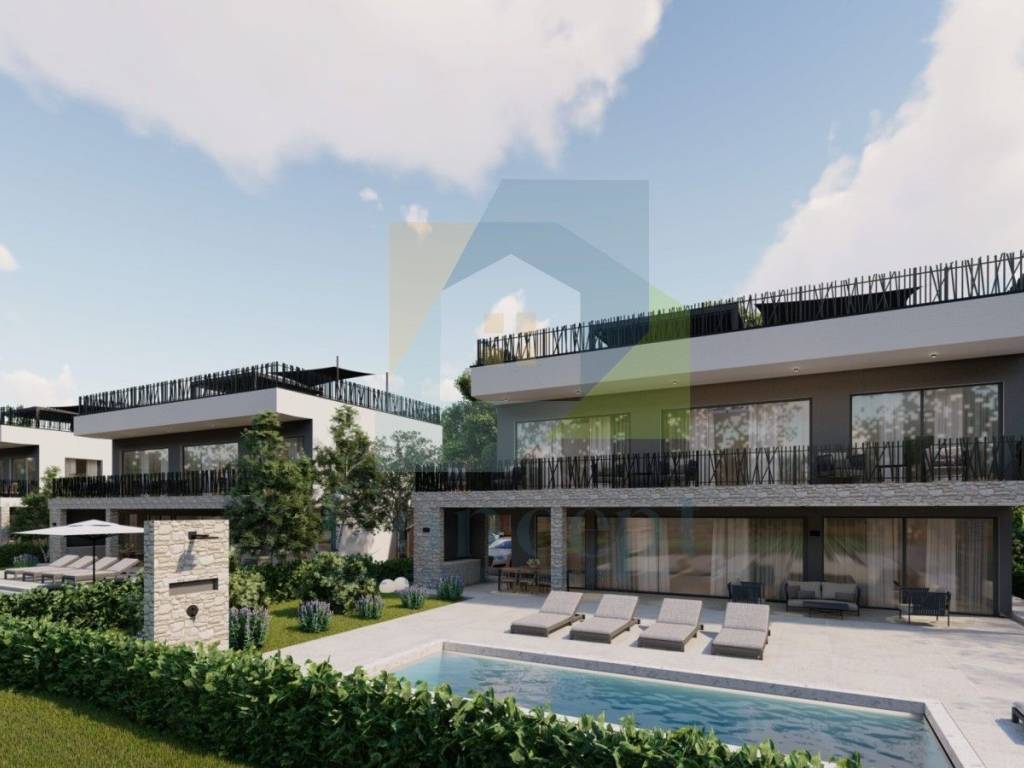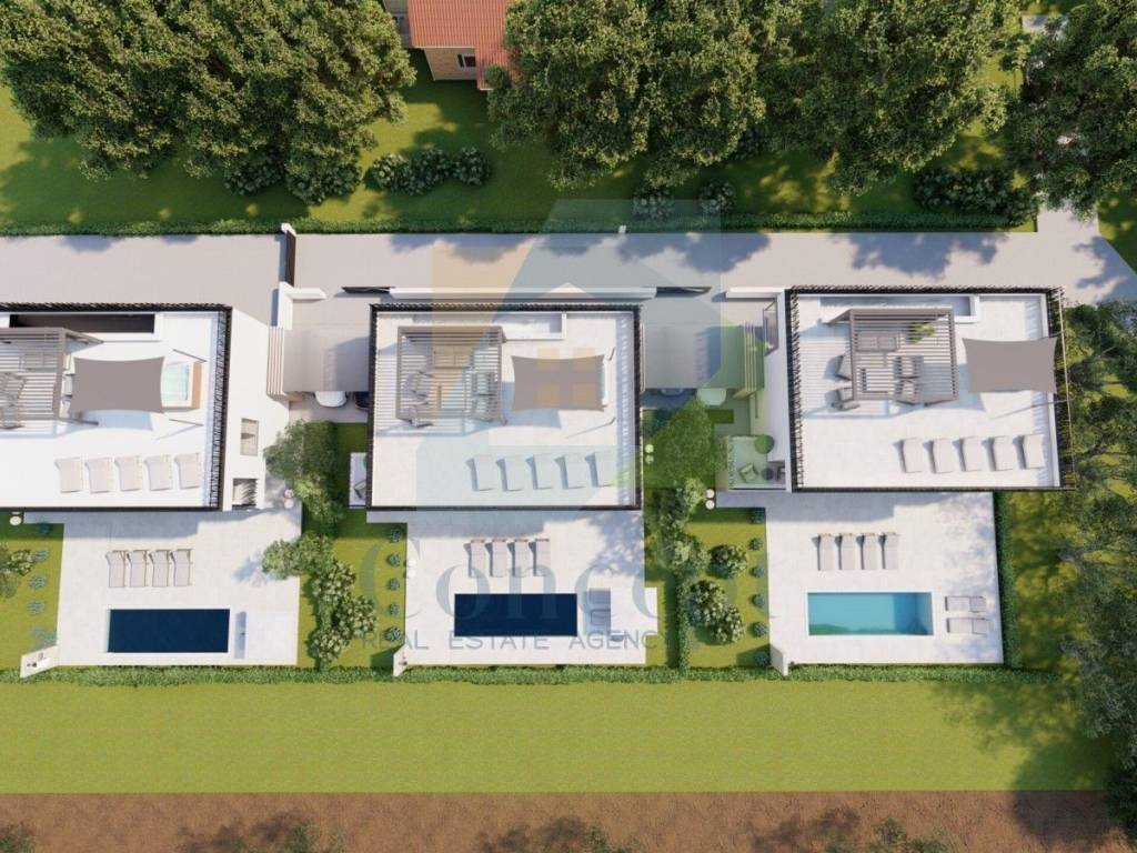 Prodajemo tri luksuzne vile smještene na izvanrednoj lokaciji, samo 400 m od mora i 2 km od centra grada. Svaka vila prostire se na zemljištu površine oko 500 m, a ukupna površina svake kuće iznosi 189 m, raspoređena kroz prizemlje, kat i krovnu terasu.
