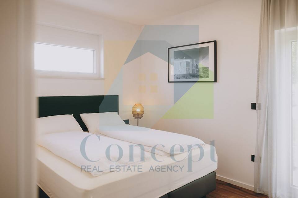 Kvalitetna ALU stolarija s trostrukim ostakljenjem, električne rolete i vinil parket s 35-godišnjom garancijom osiguravaju dugotrajnost i udobnost, dok je cijela kuća izolirana sa 16 cm stiropora. Grijanje i hlađenje osiguravaju vrhunski klima uređaji Fujitsu.