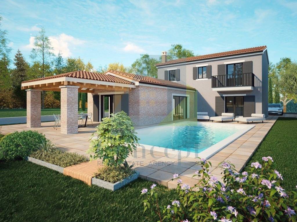 Na prodaju jeova prekrasna vila s bazenom, smještena u blizini Poreča, koja nudi izvanredan pogled na more. Ova nekretnina se nalazi u mjestu s razvijenom infrastrukturom, udaljena otprilike 8 kilometara od obale i 12 kilometara od samog Poreča, što je čini idealnom lokacijom za one koji žele uživati u mirnom okruženju, ali blizu svih važnih sadržaja.