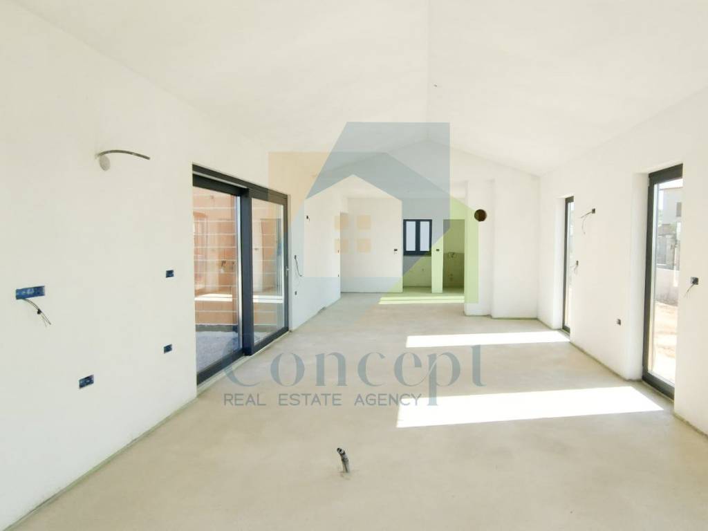 Vila se prostire na zemljištu površine 750 m, dok stambena površina iznosi 159,52 m. U prizemlju se nalaze funkcionalni prostori koji uključuju hodnik, prostrani dnevni boravak povezan s kuhinjom i blagovaonicom, kao i spavaća soba sa vlastitom kupaonicom. Tu su također gostinjski WC, ostava (tehnička soba) i natkrivena terasa koja pruža dodatni prostor za opuštanje i druženje.