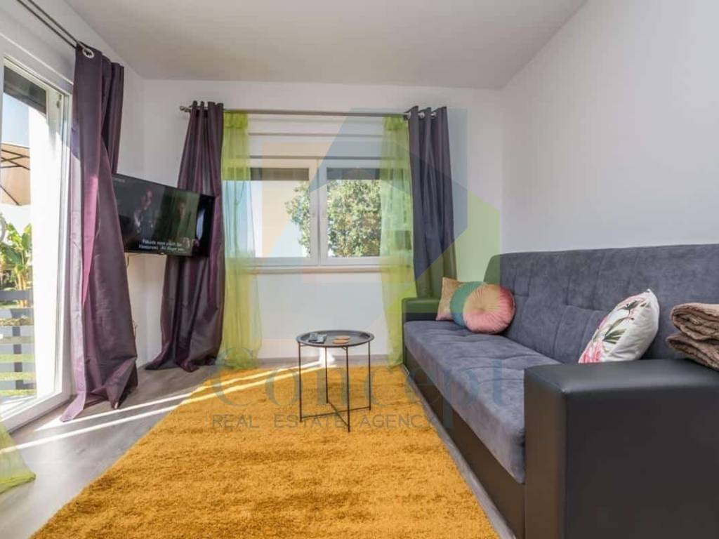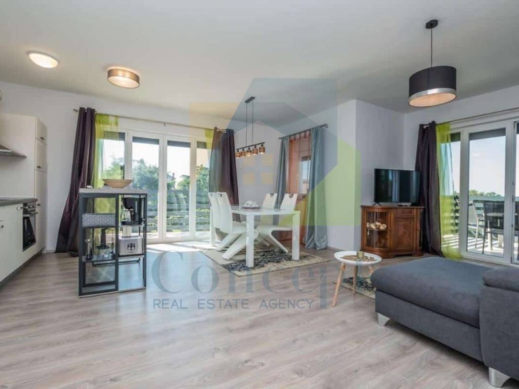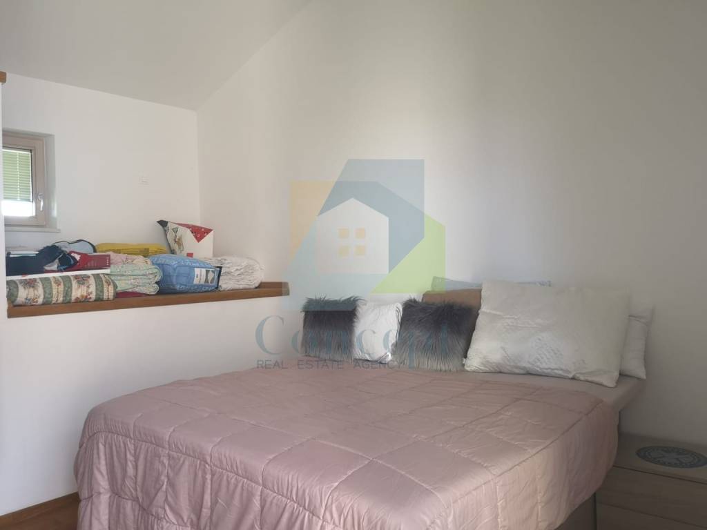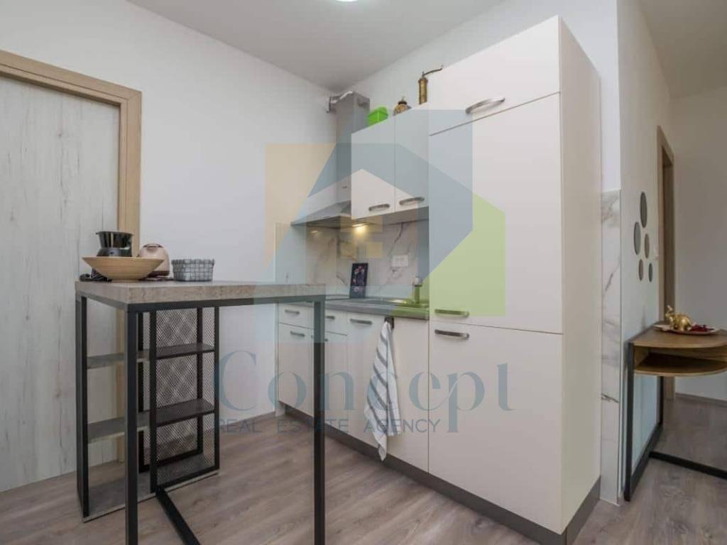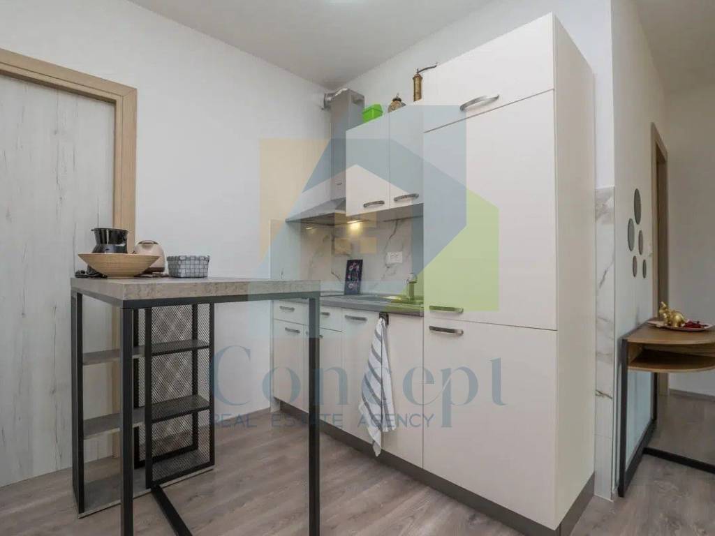 Prodaje se potpuno namještena, s pažljivo osmišljenim namještajem po mjeri. Bijela paleta boja i drveni podovi dodatno naglašavaju dojam svježine i prozračnosti, a svaki detalj uređenja odražava pažnju posvećenu praktičnosti i estetici.