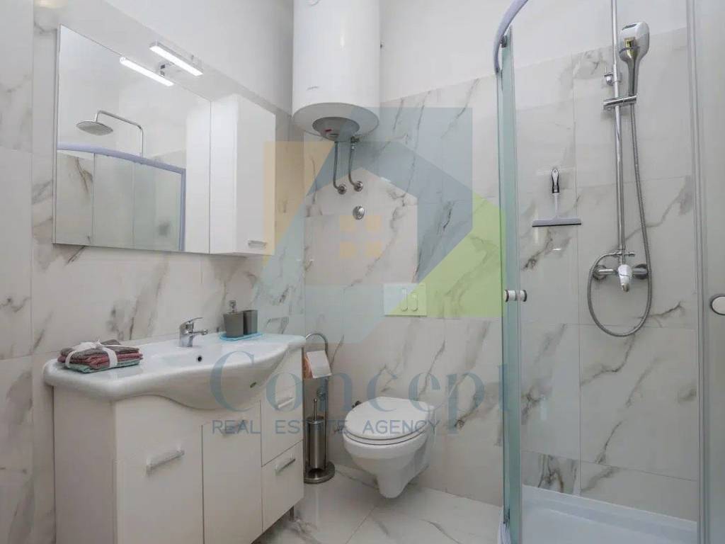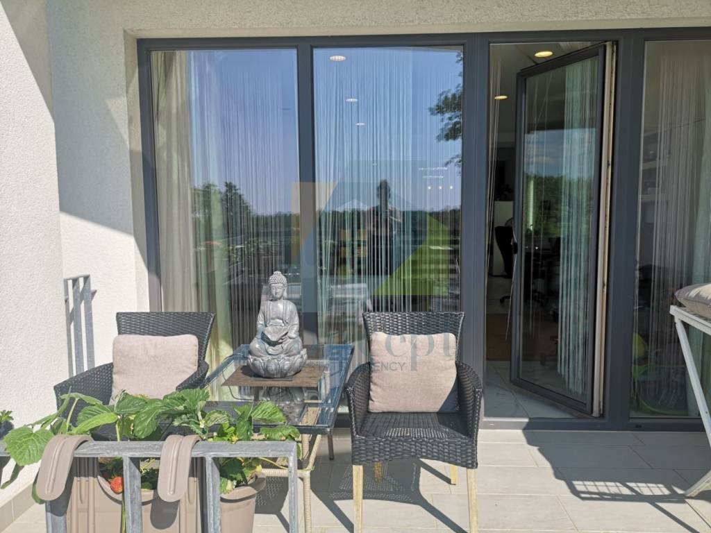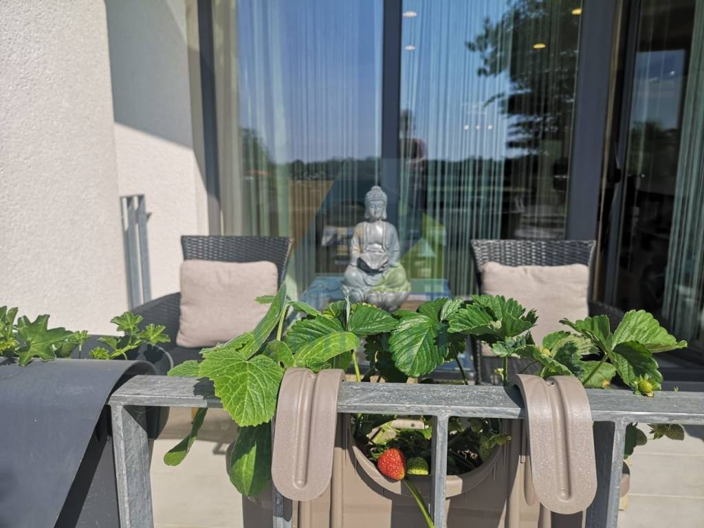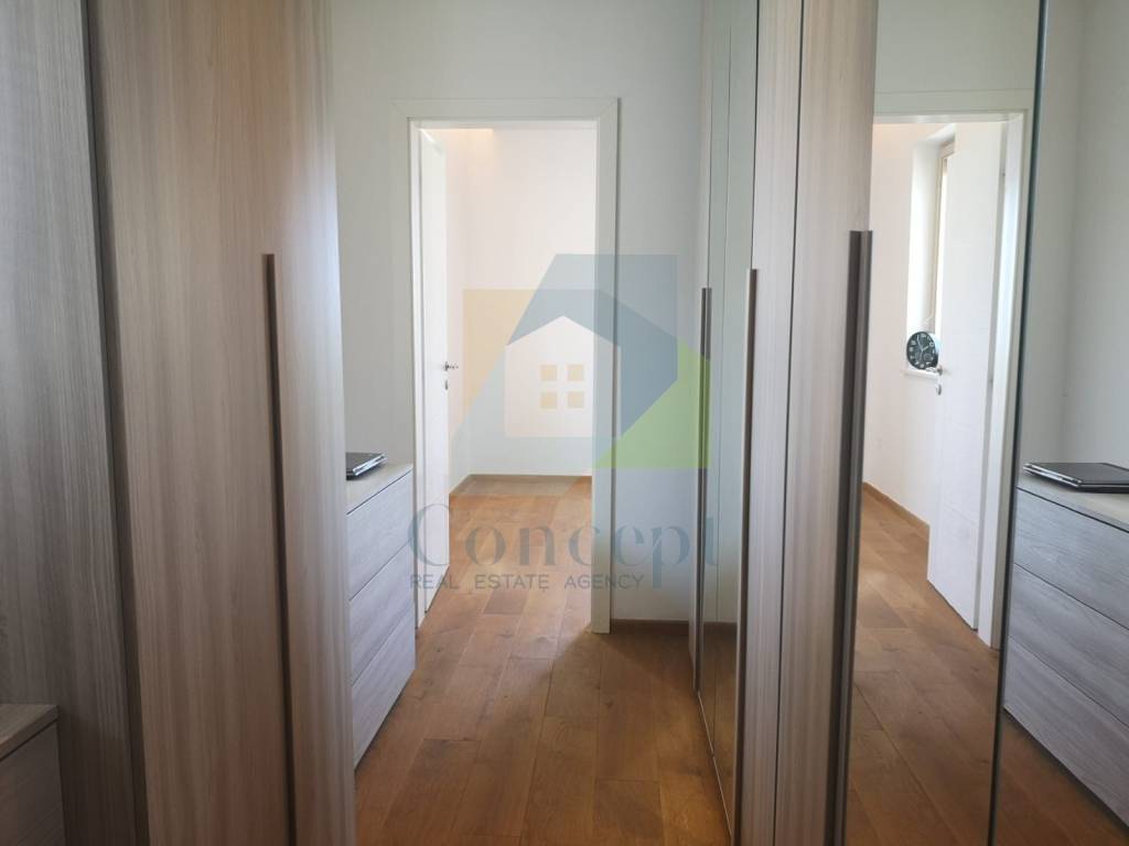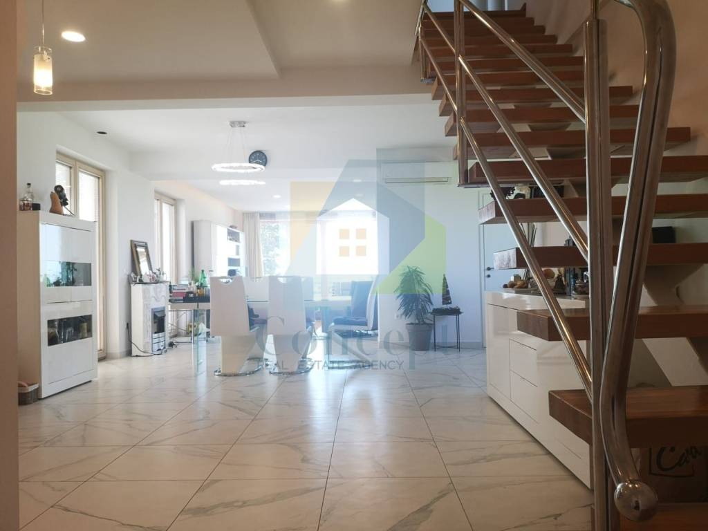 Prodaje se potpuno namještena, s pažljivo osmišljenim namještajem po mjeri. Bijela paleta boja i drveni podovi dodatno naglašavaju dojam svježine i prozračnosti, a svaki detalj uređenja odražava pažnju posvećenu praktičnosti i estetici.