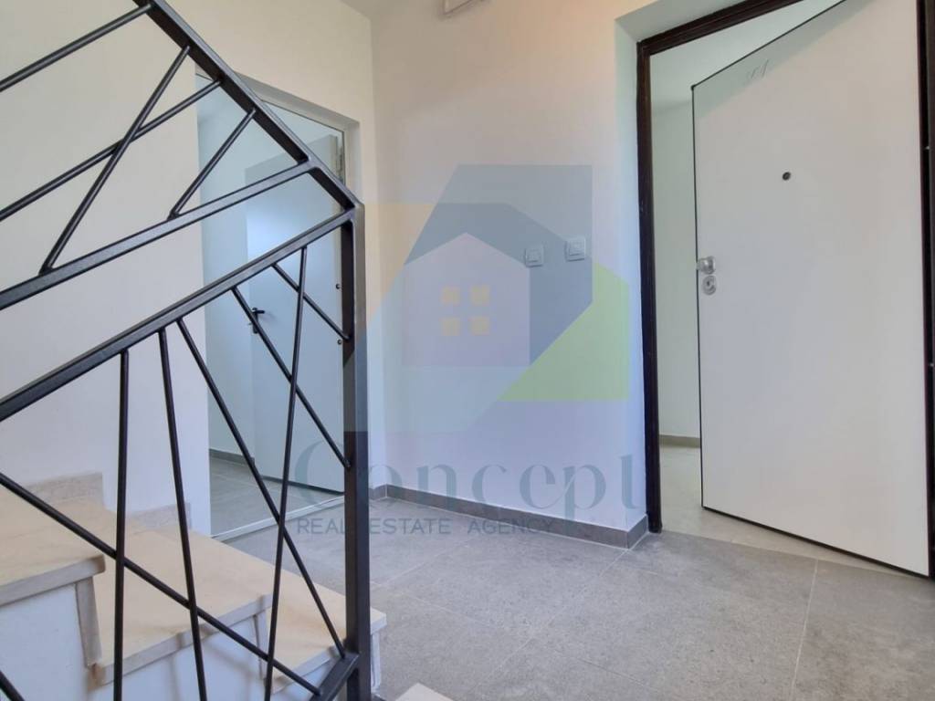 Sastoji se od prostranog dnevnog boravka s blagovaonicom, dok je kuhinja pomalo izdvojena. Hodnikom se dolazi do 3 spavaće sobe i kupaonice. Stan također uključuje gostinjski WC na ulazu, kao i spremište od 5 m i prostor ispod zajedničkog stepeništa koje se može koristiti kao dodatno spremište. Iz dnevne sobe i kuhinje izlazi se na natkrivenu terasu i vrt.