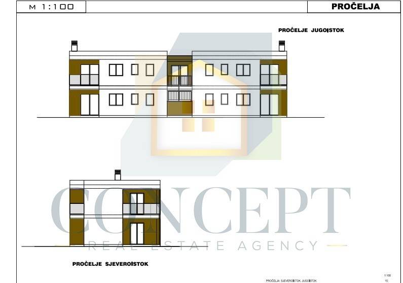 Stan će imati površinu od 72 m, a pripadat će mu i okućnica od 150 m. Sastojat će se od ulaznog hodnika, kuhinje s blagovaonicom i dnevnim boravkom s izlazom na terasu. S desne strane ulaza predviđena je kupaonica, a s lijeve dvije spavaće sobe, od kojih jedna ima izlaz na terasu.