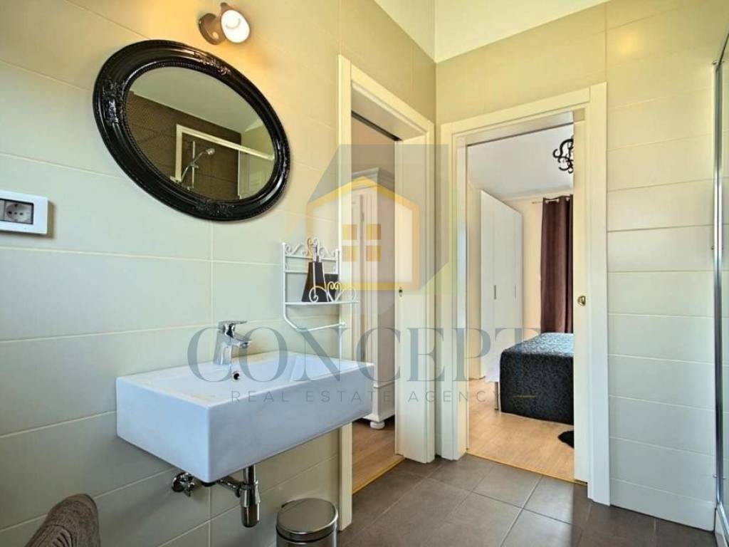 Kuća ima 165 m stambene površine, raspoređenih na dvije etaže, i nalazi se na zemljištu površine 818 m. U prizemlju se nalaze dnevni boravak, blagovaonica, toalet te dvije spavaće sobe s vlastitim kupaonicama. Na katu su još dvije spavaće sobe, od kojih jedna ima izlaz na terasu s pogledom na prirodu, i dodatna kupaonica.