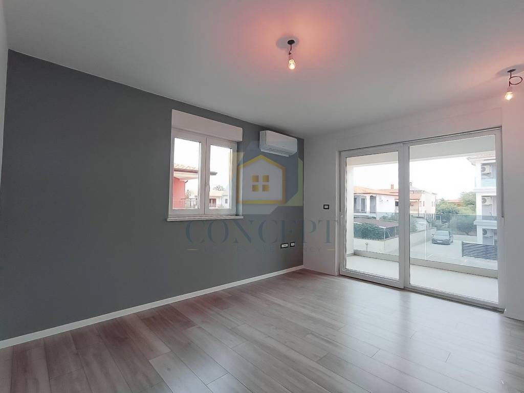 U mirnom naselju, 7 kilometara od Poreča i uređenih plaža, prodaje se stan na drugom katu manje zgrade s ukupno devet stanova.